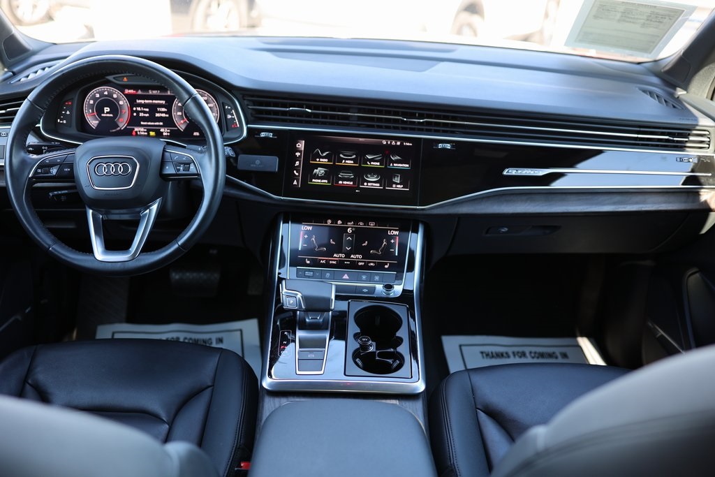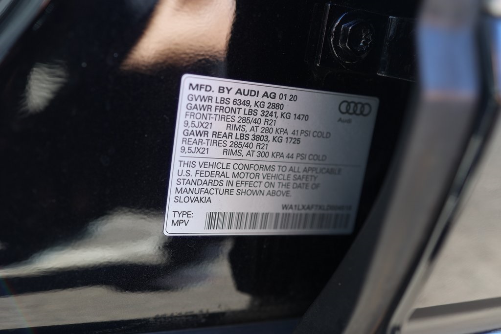 Black 2020 Audi Q7 55 Premium Plus quattro quattro 8-Speed Automatic with Tiptronic 3.0L TFSI V6 DOHC 3D Bose Surround Sound System, 3rd row seats: bench, Ambient Interior Lighting Package, Audi Phone Box w/Wireless Charging, Audi Side Assist w/Pre Sense Rear, Convenience Package, Exterior Parking Camera Rear, Heated Auto-Dimming Power Folding Exterior Mirrors, Heated door mirrors, Heated Front Bucket Seats, Illuminated Door Sills, Navigation system: Audi MMI Navigation plus with Touch Response, Power Liftgate, Premium Plus Package, Topview Camera System, Wheels: 21" Audi Sport 5-Dbl-Spoke Modular- Design.Recent Arrival!