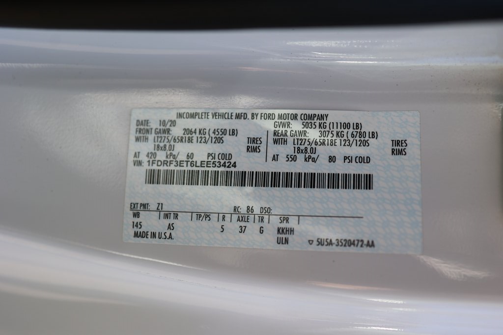 Oxford White 2020 Ford F-350SD XL RWD 10-Speed Automatic Power Stroke 6.7L V8 DI 32V OHV Turbodiesel 18" Argent Painted Steel Wheels, 3.73 Axle Ratio, Air Conditioning, Fully automatic headlights, GVWR: 10,500 lb Payload Package, HD Vinyl 40/20/40 Split Bench Seat.