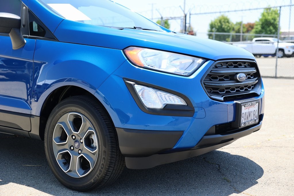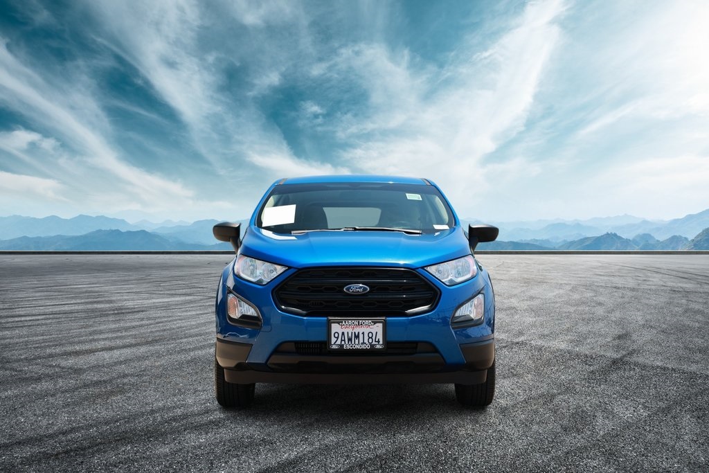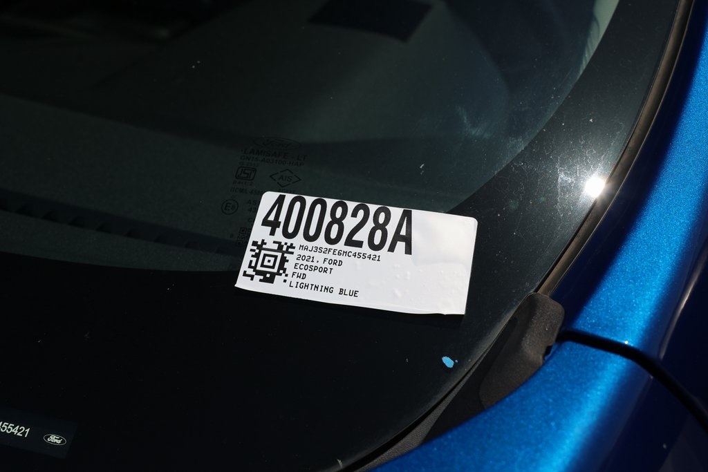 Lightning Blue 2021 Ford EcoSport S FWD 6-Speed Automatic EcoBoost 1.0L I3 GTDi DOHC Turbocharged VCT 6 Speakers, Air Conditioning, Cloth Front Bucket Seats, Equipment Group 100A, Exterior Parking Camera Rear, Fully automatic headlights, Speed control, SYNC Communications & Entertainment System, Wheels: 16" Low-Gloss Magnetic-Painted.Odometer is 11668 miles below market average! 27/29 City/Highway MPG
