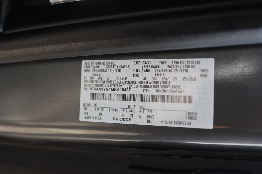 Carbonized Gray 2021 Ford Transit-350 XLT AWD 10-Speed Automatic with Overdrive EcoBoost 3.5L V6 GTDi DOHC 24V Twin Turbocharged 3.73 Limited-Slip Axle Ratio, ABS brakes, Adaptive Cruise Control, Air Conditioning, Auxiliary Fuse Panel, BLIS Blind Spot Information System, Carbon Black Rear Bumper w/Integral Step, Dual AGM Batteries (70 Amp-hr Each), Ebony Leather Heated Bucket Seats, Electronic Stability Control, Exterior Parking Camera Rear, Fully automatic headlights, Heated door mirrors, Illuminated entry, Large Center Console, Leather Front Bucket Seats, Low tire pressure warning, Modified Vehicle Wiring System, Power windows, Privacy Glass, Radio: AM/FM Stereo w/HD/SiriusXM/SYNC 3/Nav, Rear air conditioning, Rear Parking Sensors, Remote keyless entry, Reverse Sensing System, Short-Arm Pwr-Folding Heated Pwr Adjusting Mirrors, Traction control, Upfitter Package, Wheels: 16" Silver Steel w/Exposed Lug Nuts.Recent Arrival!