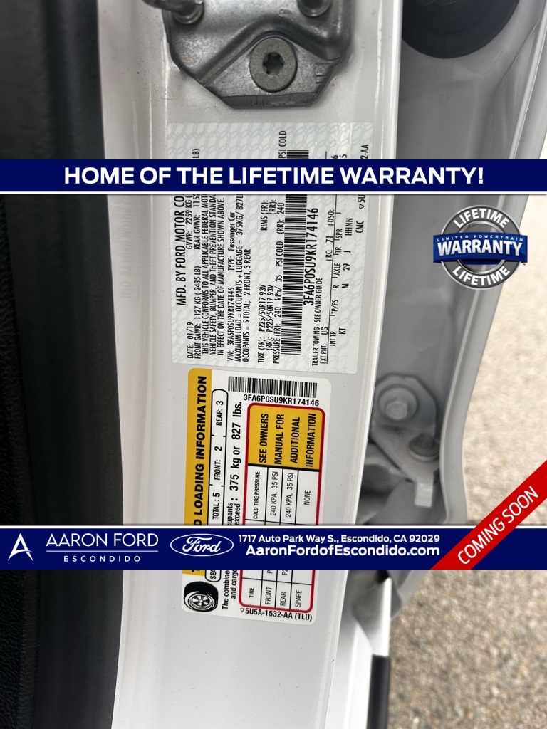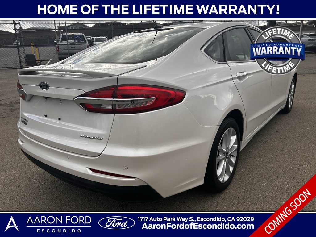 White Platinum 2019 Ford Fusion Energi Titanium FWD eCVT I4 Hybrid I4 Hybrid, Equipment Group 850A, Exterior Parking Camera Rear, Heated front seats, Navigation System, Power Moonroof, Rear Parking Sensors, Remote keyless entry, SYNC 3 Communications & Entertainment System, Wheels: 17" Sparkle Silver Painted Aluminum.