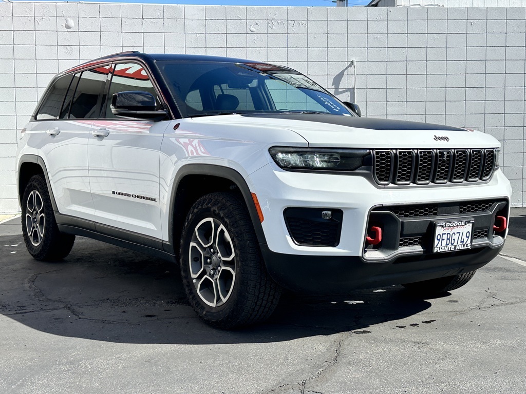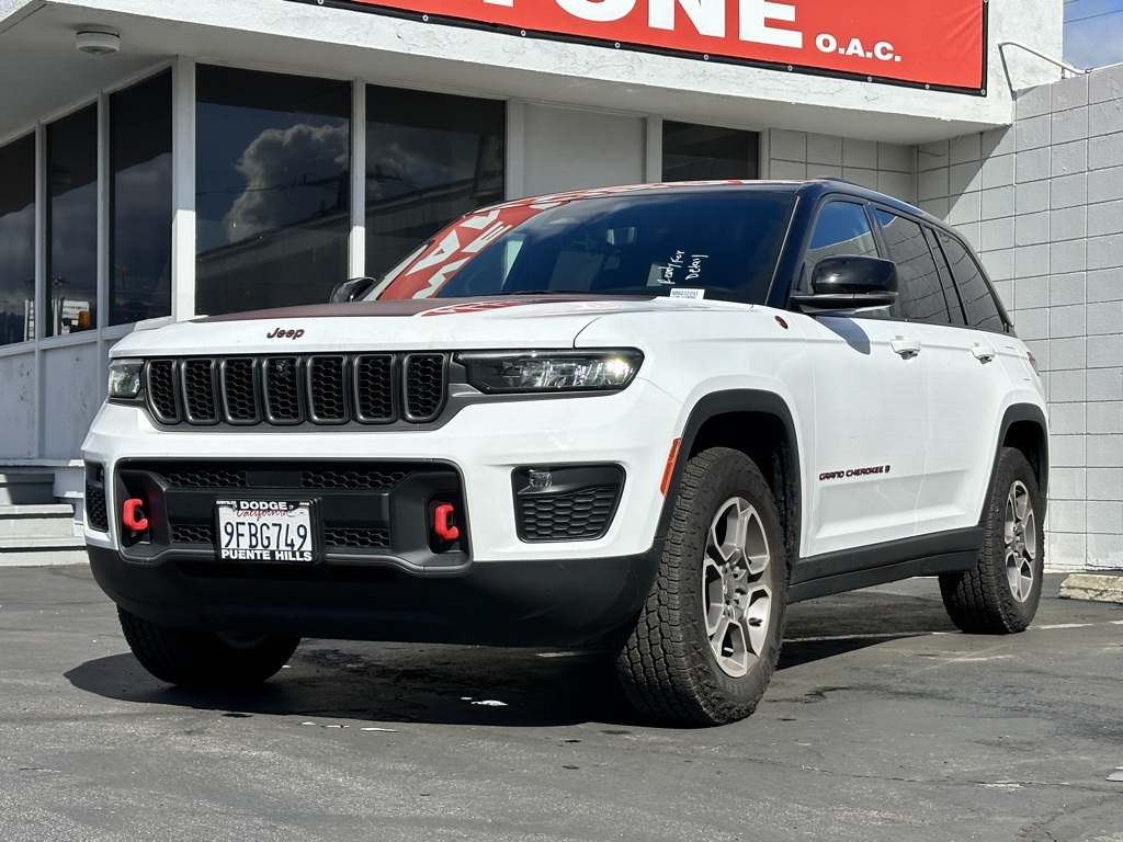 Recent Arrival! CARFAX One-Owner.19/26 City/Highway MPG 4WD, 2nd-Row Manual Window Shades, Front/Rear Doors & Liftgate w/Passive Entry, GPS Navigation, Hands-Free Power Liftgate, Luxury Tech Group III, Memory Steering Column, Navigation System, Power Tilt/Telescope Steering Column, Quick Order Package 22J, Rain Sensitive Windshield Wipers, Rearview Autodim Digital Display Mirror, Wireless Charging Pad.Bright White Clearcoat2022 Jeep Grand Cherokee Trailhawk 4WD 8-Speed Automatic 3.6L V6 24V VVT**********All Pricing and Advertised Prices for any/all vehicles offered for sale does not include dealer installed accessories which can be purchased for an additional cost.********** The Factory Rebates may not be available on this vehicle if you elect to take advantage of a Special Alternative APR or Special Lease program. Some Factory Rebates are California Resident specific and may vary for residents of other states. NO sales to Dealers, Brokers or Exporters. For out of state purchase, customers must be present to purchase. If shipping is required, dealership must facilitate; no exceptions. Please contact us for special Multi-Vehicle or Fleet pricing. Prices are plus government fees and taxes, any finance charges, $85 documentary fee, $29 electronic registration fee, any emission testing charge and $1.75 per new tire state tire fee. *** We make every effort to provide accurate information, but please verify before purchasing. Leasing & financing available on approved credit. Trade-ins accepted. Subject to prior sale.