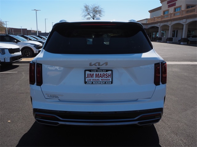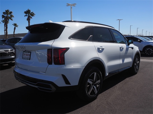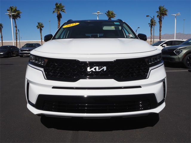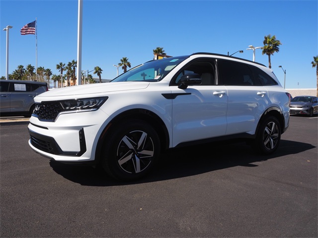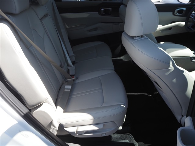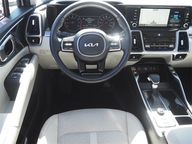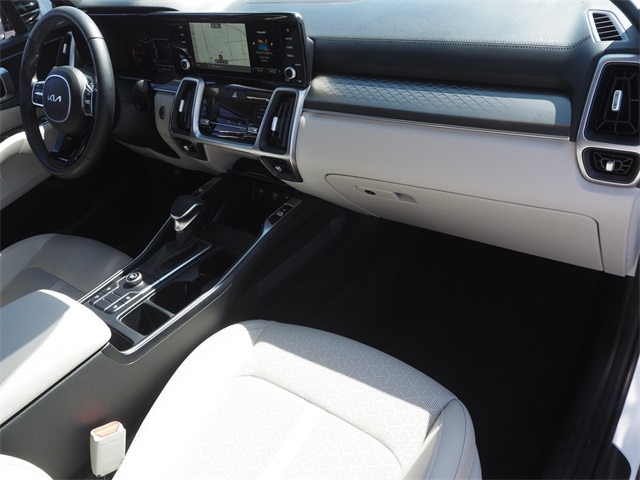 24/29 City/Highway MPGGlacial White Pearl 2023 Kia Sorento S FWD 8-Speed Automatic 2.5L I4 DGI DOHC 16V LEV3-ULEV70 191hpIf you don't drive here, you can't save here!Price may not include recon fee. Panoramic Sunroof Package (LED Interior Lighting and Panoramic Power Sunroof w/Power Sunshade), Kia Certified Pre-Owned Certified, 3.798 Axle Ratio, 3rd row seats: split-bench, 4-Wheel Disc Brakes, 6 Speakers, ABS brakes, Air Conditioning, Alloy wheels, AM/FM radio: SiriusXM, Apple CarPlay & Android Auto, Auto High-beam Headlights, Automatic temperature control, Brake assist, Bumpers: body-color, Carpet Floor Mats, Delay-off headlights, Driver door bin, Driver vanity mirror, Dual front impact airbags, Dual front side impact airbags, Electronic Stability Control, Emergency communication system, Exterior Parking Camera Rear, Four wheel independent suspension, Front anti-roll bar, Front Bucket Seats, Front Center Armrest, Front dual zone A/C, Front reading lights, Fully automatic headlights, Heated door mirrors, Heated Front Bucket Seats, Heated front seats, Illuminated entry, Knee airbag, Leather Shift Knob, Leather steering wheel, Low tire pressure warning, Navigation System, Occupant sensing airbag, Outside temperature display, Overhead airbag, Overhead console, Panic alarm, Passenger door bin, Passenger vanity mirror, Power door mirrors, Power driver seat, Power steering, Power windows, Radio data system, Radio: AM/FM Audio System, Rear air conditioning, Rear anti-roll bar, Rear reading lights, Rear seat center armrest, Rear window defroster, Rear window wiper, Remote keyless entry, Roof rack: rails only, Security system, Speed control, Speed-sensing steering, Split folding rear seat, Spoiler, Steering wheel mounted audio controls, SynTex Artificial Leather Seat Trim, Tachometer, Telescoping steering wheel, Tilt steering wheel, Traction control, Trip computer, Turn signal indicator mirrors, Variably intermittent wipers, and Wheels: 7.5J x 18" Machine-Finished Alloy.