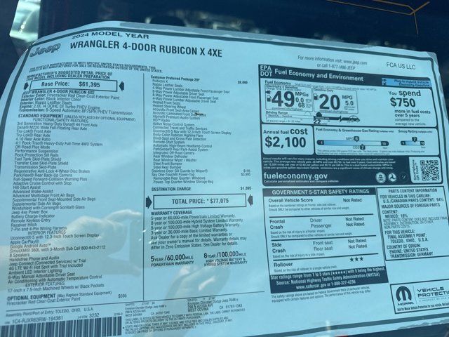 2.0L I4 DOHC.Firecracker Red Clearcoat2024 Jeep Wrangler Rubicon X 4xe 4WD 8-Speed Automatic 2.0L I4 DOHC Price includes: $3750 - Federal EV Tax Credit. Exp. 12/31/2024