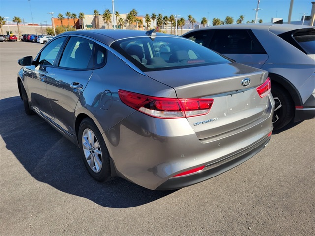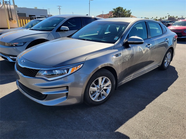 Recent Arrival!CARFAX One-Owner.Priced below KBB Fair Purchase Price!Odometer is 62568 miles below market average!25/36 City/Highway MPGTitanium Silver 2018 Kia Optima LX FWD 6-Speed Automatic with Sportmatic 2.4L I4 DGI DOHC Black Cloth.If you don't drive here, you can't save here!Awards: * 2018 KBB.com 10 Best Sedans Under $25,000Price may not include recon fee. Black Cloth, 4-Wheel Disc Brakes, 6 Speakers, 6.5J x 16" Silver Alloy Wheels, ABS brakes, Air Conditioning, Alloy wheels, AM/FM radio: SiriusXM, Anti-whiplash front head restraints, Apple CarPlay & Android Auto, Brake assist, Bumpers: body-color, Cargo Mat, Carpeted Floor Mats, Cloth Seat Trim, Delay-off headlights, Driver door bin, Driver vanity mirror, Dual front impact airbags, Dual front side impact airbags, Electronic Stability Control, Emergency communication system, Exterior Parking Camera Rear, Four wheel independent suspension, Front anti-roll bar, Front Bucket Seats, Front Center Armrest, Front reading lights, Fully automatic headlights, Heated door mirrors, Illuminated entry, Knee airbag, Low tire pressure warning, Occupant sensing airbag, Outside temperature display, Overhead airbag, Overhead console, Panic alarm, Passenger door bin, Passenger vanity mirror, Power door mirrors, Power steering, Power windows, Radio data system, Radio: AM/FM/MP3/SiriusXM Audio System, Rear anti-roll bar, Rear Parking Sensors, Rear seat center armrest, Rear window defroster, Remote keyless entry, Security system, Speed control, Speed-sensing steering, Split folding rear seat, Steering wheel mounted audio controls, Tachometer, Telescoping steering wheel, Tilt steering wheel, Traction control, Trip computer, Turn signal indicator mirrors, and Variably intermittent wipers.