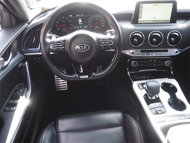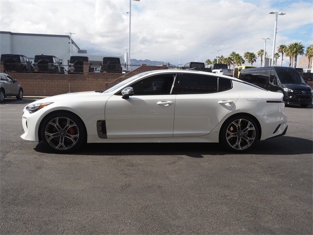CARFAX One-Owner.Priced below KBB Fair Purchase Price!Odometer is 5849 miles below market average!Snow White Pearl 2020 Kia Stinger GT2 RWD 8-Speed Automatic V6If you don't drive here, you can't save here!Awards: * JD Power Automotive Performance, Execution and Layout (APEAL) StudyPrice may not include recon fee. Kia Certified Pre-Owned Certified, 15 Speakers, 4-Wheel Disc Brakes, ABS brakes, Adaptive suspension, Air Conditioning, Alloy wheels, AM/FM radio: SiriusXM, Anti-whiplash front head restraints, Apple CarPlay & Android Auto, Auto High-beam Headlights, Auto tilt-away steering wheel, Auto-dimming door mirrors, Auto-dimming Rear-View mirror, Automatic temperature control, Brake assist, Bumpers: body-color, Carpeted Floor Mat, Compass, Delay-off headlights, Driver door bin, Driver vanity mirror, Dual front impact airbags, Dual front side impact airbags, Electronic Stability Control, Emergency communication system: UVO eServices, Four wheel independent suspension, Front anti-roll bar, Front Bucket Seats, Front Center Armrest, Front dual zone A/C, Front reading lights, Fully automatic headlights, Garage door transmitter: HomeLink, Heads-Up Display, Heated & Ventilated Front Bucket Seats, Heated door mirrors, Heated front seats, Heated rear seats, Illuminated entry, Knee airbag, Low tire pressure warning, Memory seat, Nappa Leather Seat Trim, Navigation System, Occupant sensing airbag, Outside temperature display, Overhead airbag, Overhead console, Panic alarm, Passenger door bin, Passenger vanity mirror, Power door mirrors, Power driver seat, Power Liftgate, Power moonroof, Power passenger seat, Power steering, Power windows, Radio: AM/FM/MP3/HD/SiriusXM harman/kardon Audio, Rain sensing wipers, Rear air conditioning, Rear anti-roll bar, Rear Bumper Applique, Rear reading lights, Rear seat center armrest, Rear window defroster, Remote keyless entry, Security system, Speed control, Speed-sensing steering, Speed-Sensitive Wipers, Split folding rear seat, Sport steering wheel, Steering wheel memory, Steering wheel mounted audio controls, Tachometer, Telescoping steering wheel, Tilt steering wheel, Traction control, Trip computer, Turn signal indicator mirrors, Variably intermittent wipers, Ventilated front seats, and Wheels: 19" x 8.0 Front & 19" x 8.5 Rear Alloy.