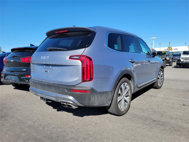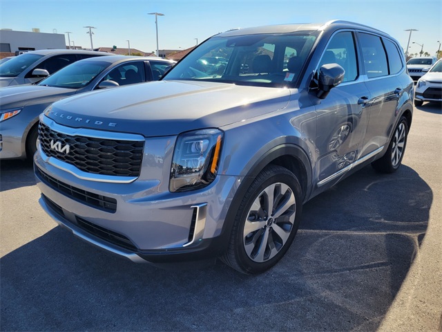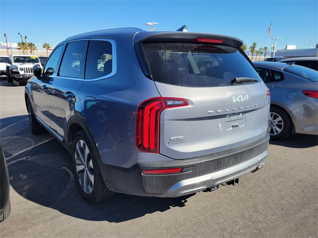 Recent Arrival!CARFAX One-Owner.Priced below KBB Fair Purchase Price!Odometer is 9129 miles below market average!Everlasting Silver 2022 Kia Telluride EX AWD 8-Speed Automatic 3.8L V6 DOHCIf you don't drive here, you can't save here!Price may not include recon fee. EX Premium Package (20" x 7.5" Machined Alloy Wheels, 2nd Row Captain Chairs, LED Headlamps, and Satin Chrome Roof Rails), Towing Package (Self Leveling Rear Suspension and Tow Hitch w/Harness (TOF)), Kia Certified Pre-Owned Certified, 3.648 Axle Ratio, 3rd row seats: split-bench, 4-Wheel Disc Brakes, 6 Speakers, ABS brakes, Air Conditioning, Alloy wheels, AM/FM radio: SiriusXM, Apple CarPlay & Android Auto, Auto-dimming Rear-View mirror, Automatic temperature control, Brake assist, Bumpers: body-color, Carpeted Floor Mats, Compass, Delay-off headlights, Driver door bin, Driver vanity mirror, Dual front impact airbags, Dual front side impact airbags, Electronic Stability Control, Emergency communication system: 911 Connect, Four wheel independent suspension, Front anti-roll bar, Front Bucket Seats, Front Center Armrest, Front dual zone A/C, Front reading lights, Fully automatic headlights, Heated & Ventilated Front Bucket Seats, Heated door mirrors, Heated front seats, Heated steering wheel, Illuminated entry, Knee airbag, Leather Seat Trim, Leather Shift Knob, Leather steering wheel, Low tire pressure warning, Navigation System, Occupant sensing airbag, Outside temperature display, Overhead airbag, Overhead console, Panic alarm, Passenger door bin, Passenger vanity mirror, Power door mirrors, Power driver seat, Power Liftgate, Power moonroof, Power passenger seat, Power steering, Power windows, Radio data system, Radio: AM/FM Display Audio System, Rear air conditioning, Rear anti-roll bar, Rear audio controls, Rear reading lights, Rear seat center armrest, Rear window defroster, Rear window wiper, Reclining 3rd row seat, Remote keyless entry, Roof rack: rails only, Security system, Speed control, Speed-sensing steering, Split folding rear seat, Spoiler, Steering wheel mounted audio controls, Tachometer, Telescoping steering wheel, Tilt steering wheel, Traction control, Trip computer, Turn signal indicator mirrors, Variably intermittent wipers, Ventilated front seats, and Wheels: 18" x 7.5" Machined Alloy.