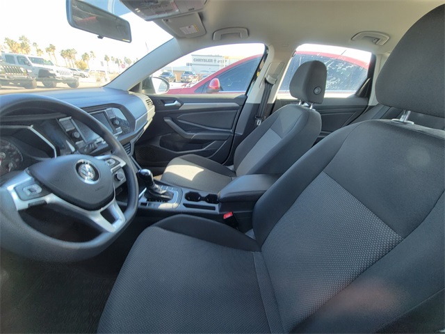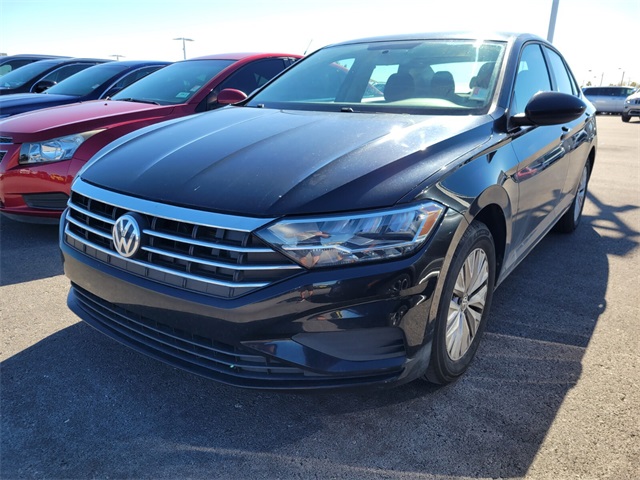 Recent Arrival!Odometer is 23389 miles below market average!30/40 City/Highway MPGBlack Uni 2019 Volkswagen Jetta 1.4T S FWD 8-Speed Automatic with Tiptronic 1.4L TSI Titan Black w/Cloth Seat Trim.If you don't drive here, you can't save here!Awards: * 2019 KBB.com 10 Best Sedans Under $30,000 * 2019 KBB.com 10 Coolest New Cars Under $20,000Price may not include recon fee. Titan Black w/Cloth Seat Trim, 4 Speakers, 4-Wheel Disc Brakes, ABS brakes, Air Conditioning, Alloy wheels, AM/FM radio, Brake assist, Bumpers: body-color, Cloth Seat Trim, Delay-off headlights, Driver door bin, Driver vanity mirror, Dual front impact airbags, Dual front side impact airbags, Electronic Stability Control, Exterior Parking Camera Rear, Front anti-roll bar, Front Bucket Seats, Front Center Armrest, Front Comfort Seats, Front wheel independent suspension, Fully automatic headlights, Illuminated entry, Low tire pressure warning, Occupant sensing airbag, Outside temperature display, Overhead airbag, Panic alarm, Passenger door bin, Passenger vanity mirror, Power door mirrors, Power steering, Power windows, Radio data system, Radio: Composition Color w/6.5" Touchscreen, Rear anti-roll bar, Rear reading lights, Rear window defroster, Remote keyless entry, Speed control, Speed-sensing steering, Split folding rear seat, Steering wheel mounted audio controls, Tachometer, Telescoping steering wheel, Tilt steering wheel, Traction control, Trip computer, Variably intermittent wipers, and Wheels: 16" Silver Rama.
