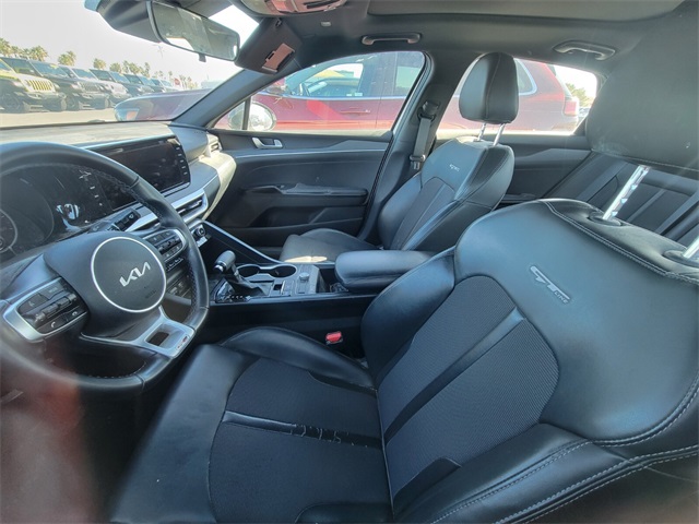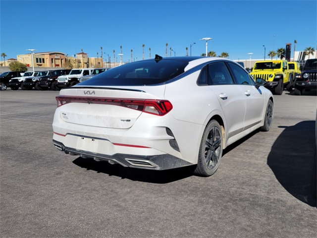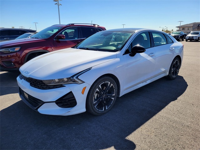 Recent Arrival!CARFAX One-Owner.27/37 City/Highway MPGGlacial White Pearl 2022 Kia K5 GT-Line FWD 8-Speed Automatic I4If you don't drive here, you can't save here!Price may not include recon fee. GT-Line FWD Premium Package (Forward Collision Avoidance-Assist - Cyclist, Forward Collision Avoidance-Assist - Junction Turn, Gloss Black Pillar & Door Frame Cover, Highway Driving Assist, LED Interior Lighting, LED Projection Headlights, Navigation-Based Smart Cruise Control - Curve, Panoramic Sunroof, and Smart Cruise Control w/Stop & Go), Kia Certified Pre-Owned Certified, 4-Wheel Disc Brakes, 6 Speakers, ABS brakes, Air Conditioning, Alloy wheels, AM/FM radio: SiriusXM, Apple CarPlay & Android Auto, Auto High-beam Headlights, Automatic temperature control, Brake assist, Bumpers: body-color, Carpeted Floor Mats, Cloth/Leatherette Seat Trim, Delay-off headlights, Driver door bin, Driver vanity mirror, Dual front impact airbags, Dual front side impact airbags, Electronic Stability Control, Four wheel independent suspension, Front anti-roll bar, Front Bucket Seats, Front Center Armrest, Front dual zone A/C, Front fog lights, Front reading lights, Fully automatic headlights, Heated door mirrors, Illuminated entry, Knee airbag, Low tire pressure warning, Navigation System, Occupant sensing airbag, Outside temperature display, Overhead airbag, Overhead console, Panic alarm, Passenger door bin, Passenger vanity mirror, Power door mirrors, Power driver seat, Power steering, Power windows, Radio data system, Radio: AM/FM/MP3 Audio System, Rear anti-roll bar, Rear seat center armrest, Rear side impact airbag, Rear window defroster, Remote keyless entry, Security system, Speed control, Speed-sensing steering, Split folding rear seat, Spoiler, Sport steering wheel, Steering wheel mounted audio controls, Tachometer, Telescoping steering wheel, Tilt steering wheel, Traction control, Trip computer, Turn signal indicator mirrors, Variably intermittent wipers, and Wheels: 7.5J x 18" Gloss Black Machined Finish Alloy.