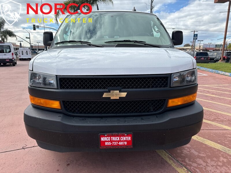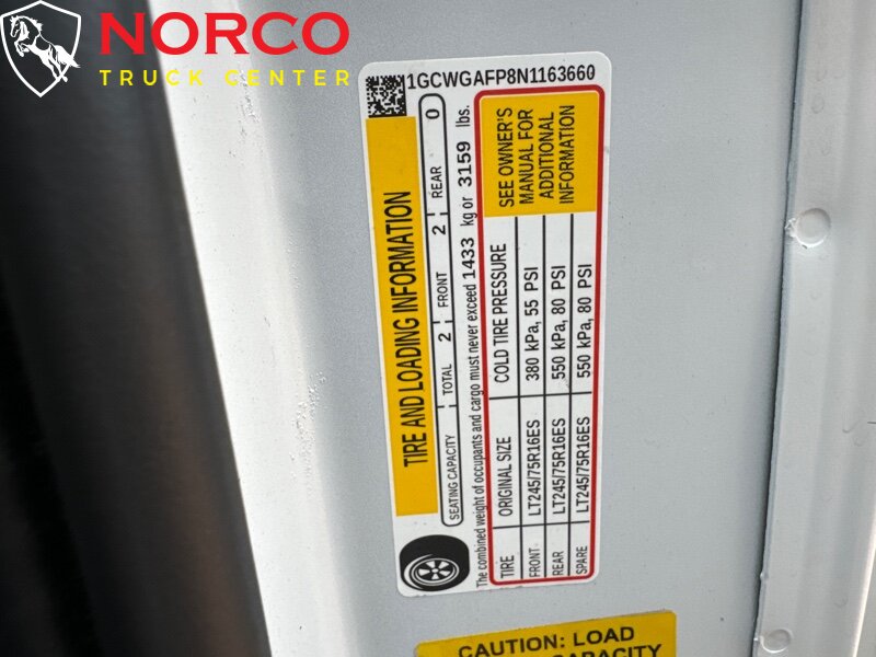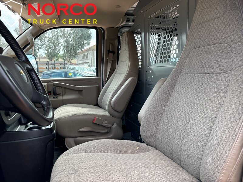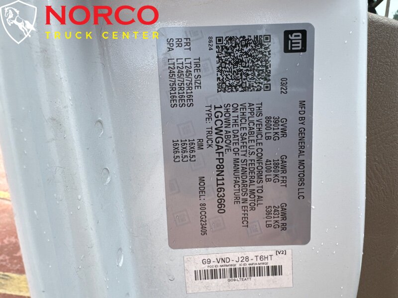 -- INSTALLED FEATURES: Front air conditioning, Front air conditioning zones: single, Airbag deactivation: passenger switch, Front airbags: dual, Side airbags: front, Side curtain airbags: front, Antenna type: mast, Auxiliary audio input: jack, Radio: AM/FM, Total speakers: 2, ABS: 4-wheel, Electronic brakeforce distribution, Front brake diameter: 12.8, Front brake type: ventilated disc, Front brake width: 1.5, Power brakes, Rear brake diameter: 13.0, Rear brake type: ventilated disc, Rear brake width: 1.14, Armrests: dual front, Floor material: cargo area rubber/vinyl / rubber/vinyl, Steering wheel trim: urethane, Assist handle: front, Cargo area light, Cupholders: front / 3, Power outlet(s): 115V front / 12V front, Power steering, Reading lights: front, Rearview mirror: manual day/night, Storage: cargo tie-down anchors and hooks / door pockets / in dash, Sun visors, Axle ratio: 3.42, Alternator: 105 amps, Auxiliary oil cooler, Battery: maintenance-free, Battery rating: 600 CCA, Battery saver, Bumper detail: rear step, Door handle color: black, Exhaust tip color: stainless steel, Front bumper color: black, Grille color: black, License plate bracket: front, Mirror color: black, Rear bumper color: black, Rear trunk/liftgate: barn, Side door type: passenger-side hinged swing-out, Window trim: black, Clock, Digital odometer, Fuel economy display: MPG / range, Gauge: oil pressure / tachometer, Multi-function display, Powertrain hour meter, Trip odometer, Warnings and reminders: low fuel level / maintenance due, Daytime running lights, Headlights: auto on/off / halogen, Side mirror adjustments: manual folding / power, Side mirrors: heated, OEM roof height: undefined, Camera system: rearview, Child seat anchors, Rearview monitor: in mirror, Front seatbelts: 3-point, Seatbelt pretensioners: front, Driver seat manual adjustments: reclining / 4, Front headrests: integrated / 2, Front seat type: bucket, Passenger seat manual adjustments: reclining / 4, Upholstery: vinyl, Anti-theft system: vehicle immobilizer, Power door locks: anti-lockout, Hill holder control, Stability control, Traction control, Steering ratio: 17.2, Turns lock-to-lock: 3.0, Front shock type: gas, Front spring type: coil, Front stabilizer bar: diameter 35 mm, Front suspension classification: independent, Front suspension type: short and long arm, Rear shock type: gas, Rear spring type: leaf, Rear suspension classification: solid live axle, Rear suspension type: multi-leaf, Driver assistance app: roadside assistance, Satellite communications: OnStar / voice guided directions, Smart device app compatibility: myChevrolet with Connected Access, Smart device app function: maintenance status, Wi-Fi: hotspot, Spare tire mount location: underbody, Spare tire size: full-size matching, Spare wheel type: steel, Tire Pressure Monitoring System, Tire type: all season, Wheel covers: partial, Wheels: steel, Tow/Haul mode, Front wipers: intermittent, Power windows, Solar-tinted glass: front / rear, Window defogger: side