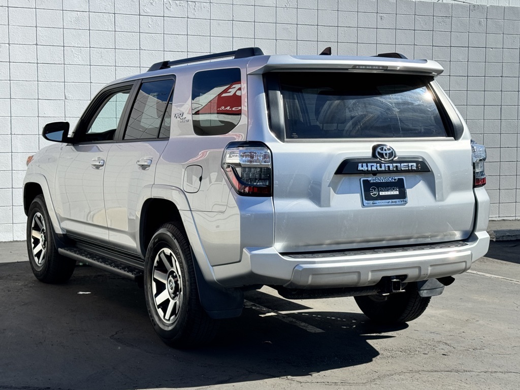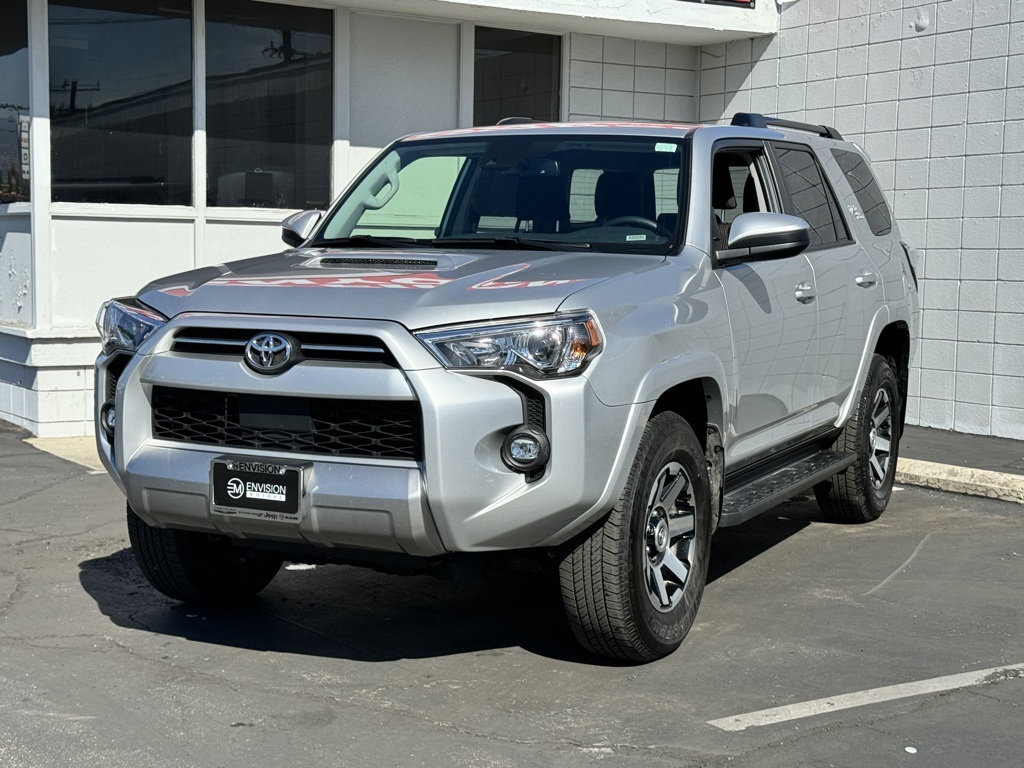 WE SPECIALIZE IN ALL CREDIT PROFILES! See what we can do for you! Call to find out (626) 899-9302.Recent Arrival! CARFAX One-Owner. Clean CARFAX.4WD, Black Cloth, Black Roof Rails, Off Road Package, Radio: Audio Plus, Running Boards (PPO) (TMS).Classic Silver2023 Toyota 4Runner TRD Off-Road 4WD 5-Speed with ECT 4.0L V6 DOHC 24V**********All Pricing and Advertised Prices for any/all vehicles offered for sale does not include dealer installed accessories which can be purchased for an additional cost.********** The Factory Rebates may not be available on this vehicle if you elect to take advantage of a Special Alternative APR or Special Lease program. Some Factory Rebates are California Resident specific and may vary for residents of other states. NO sales to Dealers, Brokers or Exporters. For out of state purchase, customers must be present to purchase. If shipping is required, dealership must facilitate; no exceptions. Please contact us for special Multi-Vehicle or Fleet pricing. Prices are plus government fees and taxes, any finance charges, $85 documentary fee, $29 electronic registration fee, any emission testing charge and $1.75 per new tire state tire fee. *** We make every effort to provide accurate information, but please verify before purchasing. Leasing & financing available on approved credit. Trade-ins accepted. Subject to prior sale.
