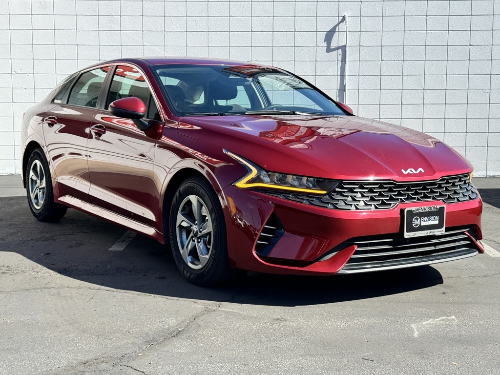 Recent Arrival! CARFAX One-Owner.27/37 City/Highway MPGPassion Red2022 Kia K5 LXS FWD 8-Speed Automatic I4**********All Pricing and Advertised Prices for any/all vehicles offered for sale does not include dealer installed accessories which can be purchased for an additional cost.********** The Factory Rebates may not be available on this vehicle if you elect to take advantage of a Special Alternative APR or Special Lease program. Some Factory Rebates are California Resident specific and may vary for residents of other states. NO sales to Dealers, Brokers or Exporters. For out of state purchase, customers must be present to purchase. If shipping is required, dealership must facilitate; no exceptions. Please contact us for special Multi-Vehicle or Fleet pricing. Prices are plus government fees and taxes, any finance charges, $85 documentary fee, $29 electronic registration fee, any emission testing charge and $1.75 per new tire state tire fee. *** We make every effort to provide accurate information, but please verify before purchasing. Leasing & financing available on approved credit. Trade-ins accepted. Subject to prior sale.