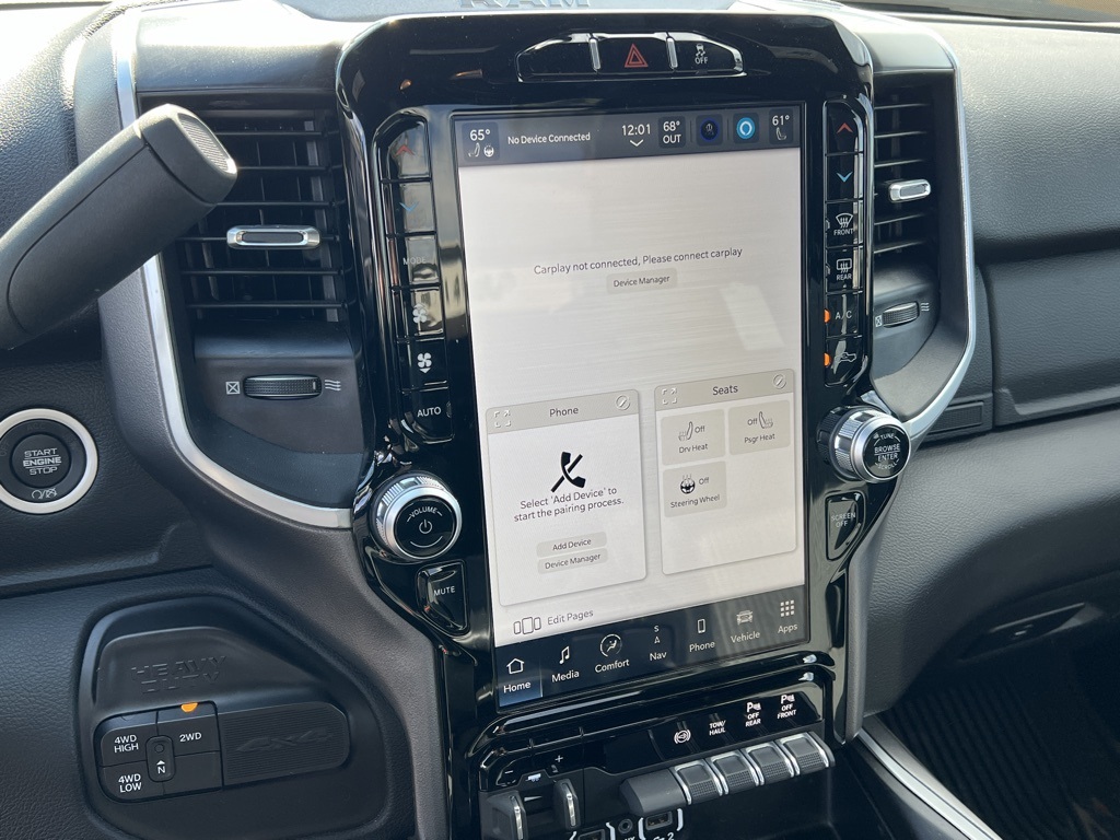 12" Touchscreen Display, 4 Way Front Headrests, 40/20/40 Split Bench Seat, 4G LTE Wi-Fi Hot Spot, Air Conditioning ATC w/Dual Zone Control, Alexa Built-In, All R1 High Radios, All Radio-Equipped Vehicles, Apple CarPlay, Auto Power-Folding Mirrors, Black Exterior Mirrors, Black Interior Accents, Blind Spot & Cross Path Detection, Body Color Door Handles, Body Color Grille Surround, Cluster 7.0" TFT Color Display, Connected Travel & Traffic Services, Connectivity - US/Canada, Dampened Tailgate, Disassociated Touchscreen Display, Dual Glove Boxes, Exterior Mirrors Courtesy Lamps, Exterior Mirrors w/Heating Element, Exterior Mirrors w/Supplemental Signals, Foam Bottle Insert (Door Trim Panel), Footwell Courtesy Lamp, For Details Visit DriveUconnect.com, For More Info, Call 800-643-2112, Forward & Reverse Utility Lights, Front Armrest w/Cupholders, Front Center Seat Cushion Storage, Front Fog Lamps, Front LED Fog Lamps, Global Telematics Box Module (TBM), Glove Box Lamp, Google Android Auto, GPS Antenna Input, GPS Navigation, HD Radio, Heated Front Seats, Heated Steering Wheel, Integrated Voice Command w/Bluetooth, Leather Wrapped Steering Wheel, LED Reflector Headlamps, LED Tail Lamps, Level B Equipment Group, Locking Lower Glove Box, Manual Adjust 4-Way Front Passenger Seat, Mirror Running Lights, Off-Road Information Pages, Painted Front Bumper, Painted Rear Bumper, ParkSense Front/Rear Park Assist System, Power 2-Way Driver Lumbar Adjust, Power Adjust 8-Way Driver Seat, Power Adjust Mirrors, Power Adjustable Pedals, Power Heated Fold Telescope Mirrors, Power Telescoping Mirrors, Power-Adjustable Convex Aux Mirrors, Premium Cloth 40/20/40 Bench Seat, Premium Lighting Group, Radio: Uconnect 5 Nav w/12.0" Display, Rear Dome w/On/Off Switch Lamp, Remote Start System, Security Alarm, Selectable Tire Fill Alert, SiriusXM Radio Service, SiriusXM Satellite Radio, SiriusXM w/360L, Sport Appearance Package, Sport Decal, Steering Wheel Mounted Audio Controls, Sun Visors w/Illum Vanity Mirrors, Tinted Acoustic Windshield Glass, Trailer Tow Pages, Universal Garage Door Opener.CARFAX One-Owner.