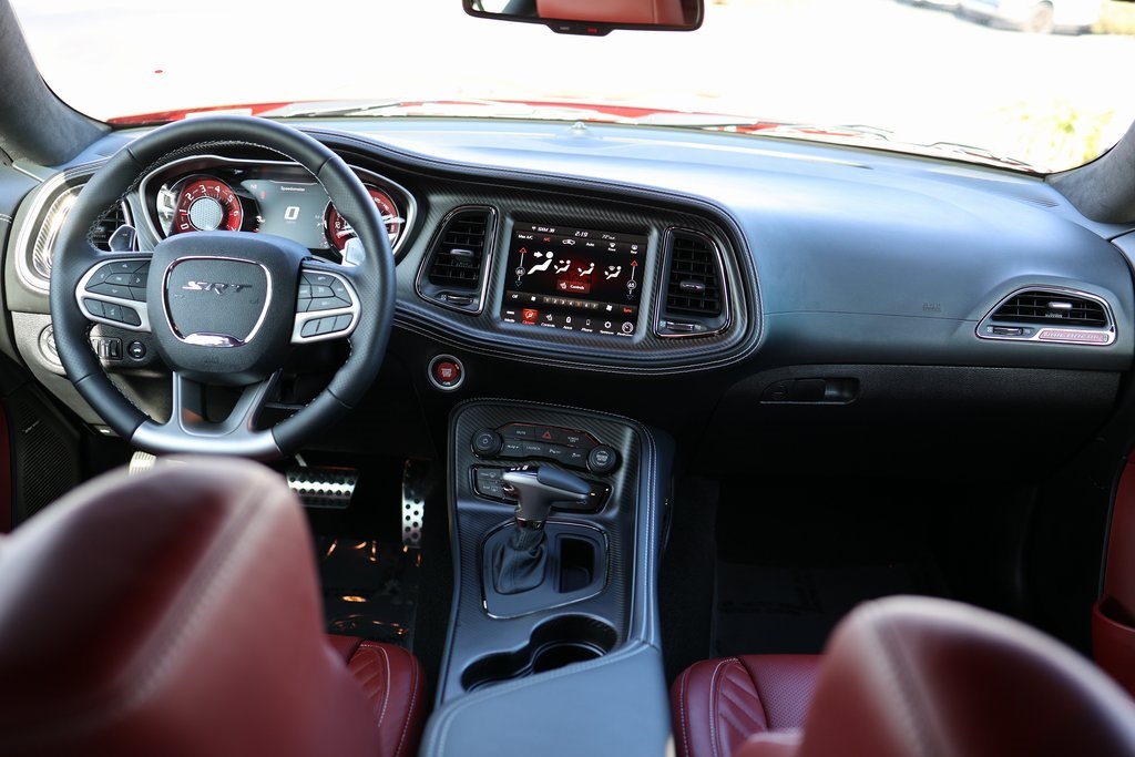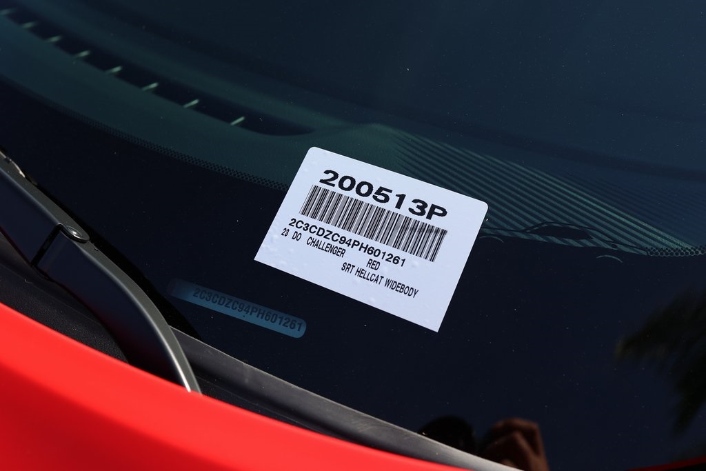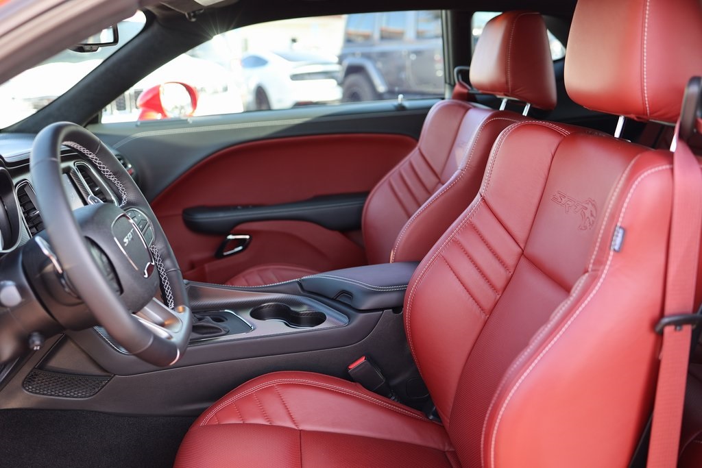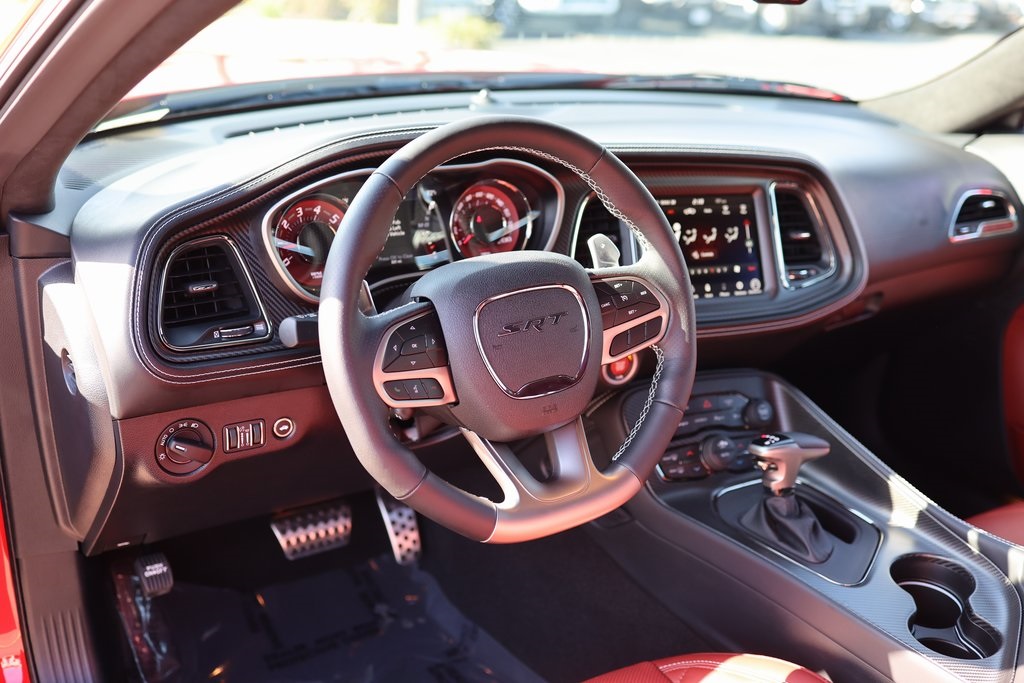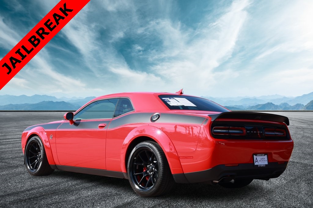 Challenger SRT Hellcat Widebody Jailbreak, 2D Coupe, 6.2L 8-Cylinder SMPI Supercharged OHV, 8-Speed Automatic, RWD, TorRed, Demonic Red/Black Leather, 18 Speakers Premium Audio System, Apple CarPlay/Android Auto, Black Seat Belts, Blind Spot & Cross Path Detection, Body Color Exterior Mirrors, Carbon/Suede Interior Package (DISC), Driver Convenience Group, Exterior Mirrors w/Heating Element, harman/kardon Audio Group w/Subwoofer, harman/kardon GreenEdge Amp, Heated Front Seats, Heated Steering Wheel, Hellcat Logo Laguna Leather Seat, High-Intensity Discharge Headlamps, Jailbreak IP Badge, Laguna Leather Package (DISC), Power Multi-Function Foldaway Mirrors, Power Tilt/Telescope Steering Column, Premium Laguna Door Trim Panel, Premium-Stitched Dash Panel, Quick Order Package 26C Hellcat Widebody Jailbreak, Radio/Driver Seat/Mirrors Memory, Real Carbon Fiber Interior Accents, SRT Performance Spoiler (DISC), SRT Widebody Stripe (DISC), Suede Headliner, Surround Sound, Trunk Mounted Subwoofer, Ventilated Front Seats, Wheels: 20" x 11.0" Devil's Rim Granite, Widebody Competition Suspension, Widebody Fender Flares.Clean CARFAX.CARFAX One-Owner.