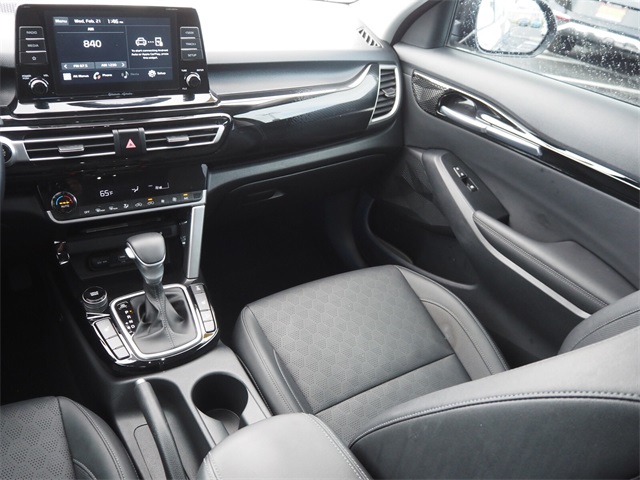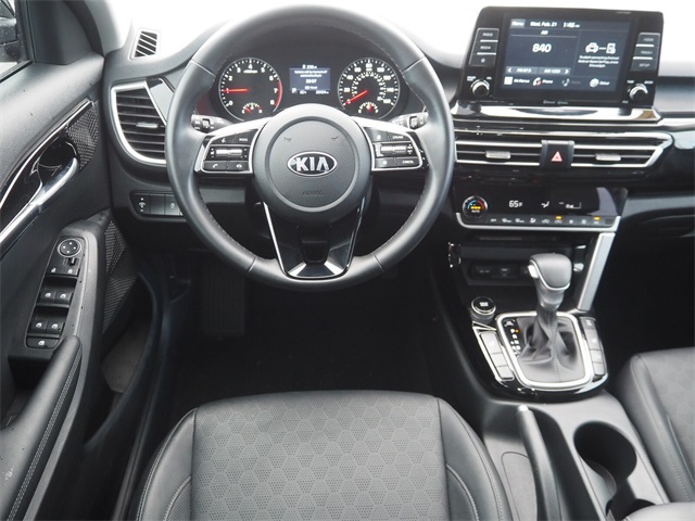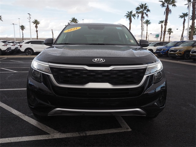 Recent Arrival!CARFAX One-Owner.Odometer is 6960 miles below market average!27/31 City/Highway MPGCherry Black 2021 Kia Seltos EX AWD IVT 2.0L I4 MPIIf you don't drive here, you can't save here!Price may not include recon fee. Kia Certified Pre-Owned Certified, 17" Alloy Machine-Finished Wheels, 4-Wheel Disc Brakes, 6 Speakers, 6.052 Axle Ratio, ABS brakes, Air Conditioning, Alloy wheels, AM/FM radio, Apple CarPlay & Android Auto, Auto-Dimming Mirror, Automatic temperature control, Brake assist, Bumpers: body-color, Cargo Net (Floor), Carpeted Floor Mats, Delay-off headlights, Driver door bin, Driver vanity mirror, Dual front impact airbags, Dual front side impact airbags, Electronic Stability Control, Exterior Parking Camera Rear, Four wheel independent suspension, Front anti-roll bar, Front Bucket Seats, Front Center Armrest, Front fog lights, Front reading lights, Fully automatic headlights, Heated door mirrors, Heated Front Bucket Seats, Heated front seats, Illuminated entry, Interior Light Kit, Leather Seat Trim, Leather Shift Knob, Low tire pressure warning, Occupant sensing airbag, Outside temperature display, Overhead airbag, Overhead console, Panic alarm, Passenger door bin, Passenger vanity mirror, Power door mirrors, Power driver seat, Power moonroof, Power steering, Power windows, Puddle Light, Radio: AM/FM/MP3 Display Audio, Rear seat center armrest, Rear window defroster, Rear window wiper, Remote keyless entry, Roof rack: rails only, Security system, Speed control, Speed-sensing steering, Split folding rear seat, Spoiler, Steering wheel mounted audio controls, Tachometer, Telescoping steering wheel, Tilt steering wheel, Traction control, Trip computer, Turn signal indicator mirrors, and Variably intermittent wipers.