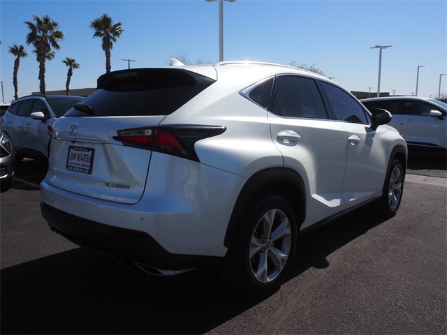 Priced below KBB Fair Purchase Price!Odometer is 7664 miles below market average!Eminent White Pearl 2017 Lexus NX 200t AWD 6-Speed Automatic 2.0L 16V DOHC ABS brakes, Alloy wheels, Electronic Stability Control, Front dual zone A/C, Heated door mirrors, Illuminated entry, Low tire pressure warning, Remote keyless entry, Traction control.If you don't drive here, you can't save here!Awards: * 2017 KBB.com 10 Best Luxury Cars Under $35,000 * 2017 KBB.com Brand Image AwardsPrice may not include recon fee. ABS brakes, Alloy wheels, Electronic Stability Control, Front dual zone A/C, Heated door mirrors, Illuminated entry, Low tire pressure warning, Remote keyless entry, Traction control, 3.888 Axle Ratio, 4-Wheel Disc Brakes, 8 Speakers, Air Conditioning, AM/FM radio: SiriusXM, Auto-dimming Rear-View mirror, Automatic temperature control, Brake assist, Bumpers: body-color, CD player, Delay-off headlights, Driver door bin, Driver vanity mirror, Dual front impact airbags, Dual front side impact airbags, Emergency communication system: Lexus Enform w/Safety Connect, Exterior Parking Camera Rear, Four wheel independent suspension, Front anti-roll bar, Front Bucket Seats, Front Center Armrest, Front fog lights, Front reading lights, Fully automatic headlights, High Clearance Lamp, Knee airbag, Leather Shift Knob, Leather steering wheel, Occupant sensing airbag, Outside temperature display, Overhead airbag, Overhead console, Panic alarm, Passenger door bin, Passenger vanity mirror, Power door mirrors, Power driver seat, Power passenger seat, Power steering, Power windows, Radio data system, Radio: AM/FM/CD Lexus Display Audio, Rear anti-roll bar, Rear seat center armrest, Rear window defroster, Rear window wiper, Roof rack: rails only, Security system, Speed control, Speed-sensing steering, Split folding rear seat, Spoiler, Steering wheel mounted audio controls, Synthetic Leather Seat Trim, Tachometer, Telescoping steering wheel, Tilt steering wheel, Trip computer, Turn signal indicator mirrors, Variably intermittent wipers, and Wheels: 17" x 7.0J 10-Spoke Aluminum.
