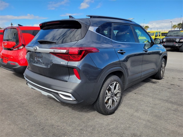 CARFAX One-Owner.Priced below KBB Fair Purchase Price!Odometer is 28522 miles below market average!27/31 City/Highway MPGGravity Gray 2021 Kia Seltos EX AWD IVT 2.0L I4 MPIIf you don't drive here, you can't save here!Price may not include recon fee. Gray Interior Package, Kia Certified Pre-Owned Certified, 17" Alloy Machine-Finished Wheels, 4-Wheel Disc Brakes, 6 Speakers, 6.052 Axle Ratio, ABS brakes, Air Conditioning, Alloy wheels, AM/FM radio, Apple CarPlay & Android Auto, Automatic temperature control, Brake assist, Bumpers: body-color, Cargo Net (Floor), Carpeted Floor Mats, Delay-off headlights, Driver door bin, Driver vanity mirror, Dual front impact airbags, Dual front side impact airbags, Electronic Stability Control, Exterior Parking Camera Rear, Four wheel independent suspension, Front anti-roll bar, Front Bucket Seats, Front Center Armrest, Front fog lights, Front reading lights, Fully automatic headlights, Heated door mirrors, Heated Front Bucket Seats, Heated front seats, Illuminated entry, Leather Seat Trim, Leather Shift Knob, Low tire pressure warning, Occupant sensing airbag, Outside temperature display, Overhead airbag, Overhead console, Panic alarm, Passenger door bin, Passenger vanity mirror, Power door mirrors, Power driver seat, Power moonroof, Power steering, Power windows, Radio: AM/FM/MP3 Display Audio, Rear seat center armrest, Rear window defroster, Rear window wiper, Remote keyless entry, Roof rack: rails only, Security system, Speed control, Speed-sensing steering, Split folding rear seat, Spoiler, Steering wheel mounted audio controls, Tachometer, Telescoping steering wheel, Tilt steering wheel, Traction control, Trip computer, Turn signal indicator mirrors, and Variably intermittent wipers.