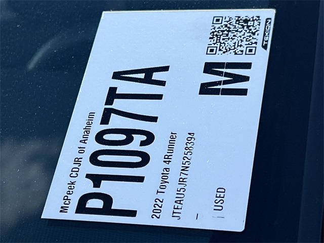 Odometer is 23890 miles below market average! Clean CARFAX. CARFAX One-Owner. INTERIOR & EXTERIOR PROFESSIONALLY DETAILED FOR DELIVERY, MCPEEK CHRYSLER DODGE JEEP RAM FAMILY OWNED AND OPERATED SINCE 1961 !!!!!.Dark Gray Metallic 2022 Toyota 4Runner TRD Sport RWD 5-Speed with ECTReceive Free lube and oil filter changes for up to 45,000 miles for 3 years!!! McPeek's Dodge of Anahiem 1221 S. Auto Center Drive Anahiem, CA 92806 714-262-4902.