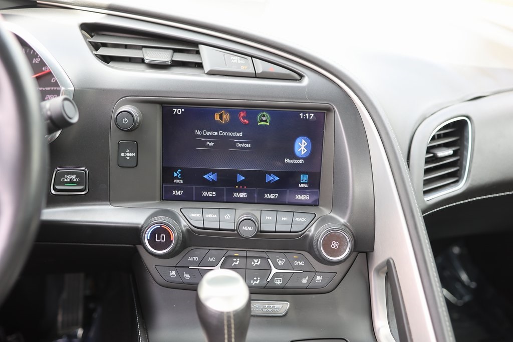Black 2014 Chevrolet Corvette Stingray 3LT RWD 6-Speed Automatic Paddle Shift 6.2L V8 18" x 8.5" Fr & 19" x 10" Rr 5-Spoke Wheels, 3LT Interior Trim, Air Conditioning, Auto-Dimming Inside Frameless Rearview Mirror, Body-Color Outside Heated Power-Adjustable Mirrors, Bose Premium 9-Speaker Audio System Feature, Cargo Net, Custom Leather Wrapped Interior Package, Exterior Parking Camera Rear, Head-Up Display, Heated & Vented Driver & Passenger Seats, High-Intensity Discharge Headlights, Memory Package, Navigation System, Power Lumbar/Bolster Seat Adjusters, Preferred Equipment Group 3LT, Radio: Chevrolet MyLink AM/FM Stereo, Theft Deterrent System, Universal Home Remote.Recent Arrival!Awards: * Car and Driver 10 Best Cars * Ward's 10 Best Engines * NACTOY 2014 North American Car of the Year * 2014 KBB.com Brand Image AwardsCar and Driver, January 2017.Reviews: * If you like the idea of owning unimaginably good horsepower and performance value, and controlling it from a Ritz-Carlton of an interior, the Corvette Stingray couldn’t make more sense. Source: KBB.com * Relentless V8 power; impressive handling and braking; upgraded interior with new electronic features; roomy cargo area; nifty rev-match manual transmission. Source: Edmunds * With its sculpted athletic exterior and driver-oriented cockpit, Stingray is a beautiful weapon against the ordinary. But its ingenious design is purpose-driven. A lightweight aluminum space frame replaces steel. Carbon-fiber and carbon-nano-composite structures reduce weight even further to achieve optimal handling and acceleration. Provocative, purposeful and sculpted for optimal performance, the Stingray coupe is low, light and lean. Increased downforce keeps the vehicle planted, while its functional exterior vents create a totally new breathing experience to reduce lift and minimize drag. The advanced ventilation systems help air flow from front to back, cooling critical components of the perfectly balanced powertrain. Illuminated by innovative digital features and intelligent driver controls, the Stingray cockpit is a stunning change from your typical interior scenery. An ingenious available color Head-Up Display complements the customizable dual display featuring two 8-inch screens. A sweeping freeform line spans the instrument panel and flawlessly carries over into the door trim and console. And every inch is imbued with a deep respect for authentic materials. Real aluminum. Available carbon fiber. Grade A leather hand-selected and crafted to adorn a new generation of elegance. Completely redesigned, the 6.2L V8 engine boasts up to an estimated 460hp, 465 lb.-ft. of torque, plus 0-60 times of 3.8 seconds. This is complemented with an all-new 7-speed transmission. Intelligent sensors anticipate gear selections and match engine speed for smooth transitions during both upshifts and downshifts. The MyLink system begins with a retractable 8-inch diagonal high-definition color touch-screen. Using steering wheel controls, hand gesture and voice recognition capabilities, you can talk and text hands-free, stream HD Radio and third-party music services like Pandora, plus access a broad range of functions including OnStar and available navigation. Source: The Manufacturer Summary