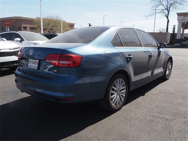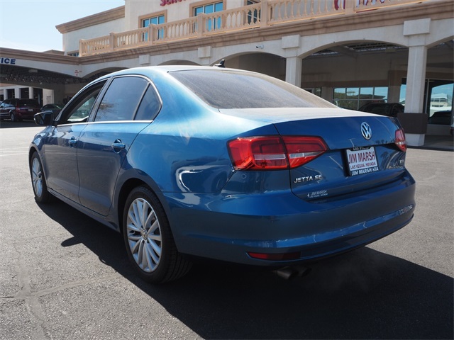 CARFAX One-Owner.25/37 City/Highway MPGBlue 2015 Volkswagen Jetta 1.8T SE FWD 6-Speed Automatic with Tiptronic 1.8L I4 DOHC TurbochargedIf you don't drive here, you can't save here!Price may not include recon fee. 4-Wheel Disc Brakes, 6 Speakers, ABS brakes, Air Conditioning, Alloy wheels, AM/FM radio: SiriusXM, Brake assist, Bumpers: body-color, CD player, Driver door bin, Driver vanity mirror, Dual front impact airbags, Dual front side impact airbags, Electronic Stability Control, Front anti-roll bar, Front Bucket Seats, Front Center Armrest, Front reading lights, Front wheel independent suspension, Heated door mirrors, Heated front seats, Illuminated entry, Low tire pressure warning, Occupant sensing airbag, Outside temperature display, Overhead airbag, Overhead console, Panic alarm, Passenger door bin, Passenger vanity mirror, Power door mirrors, Power steering, Power windows, Radio data system, Rear anti-roll bar, Rear reading lights, Rear window defroster, Remote keyless entry, Speed control, Speed-sensing steering, Split folding rear seat, Steering wheel mounted audio controls, Tachometer, Telescoping steering wheel, Tilt steering wheel, Traction control, Trip computer, and Variably intermittent wipers.