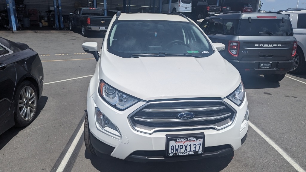 Diamond White 2018 Ford EcoSport SE FWD 6-Speed Automatic EcoBoost 1.0L I3 GTDi DOHC Turbocharged VCT Air Conditioning, AppLink/Apple CarPlay and Android Auto, Brake assist, Electronic Stability Control, Equipment Group 200A, Exterior Parking Camera Rear, Fully automatic headlights, Heated front seats, Power moonroof, Rear Parking Sensors, SYNC 3 Communications & Entertainment System, Wheels: 16" Shadow Silver-Painted Aluminum.27/29 City/Highway MPGAwards: * 2018 KBB.com 10 Most Awarded Brands * 2018 KBB.com Brand Image Awards