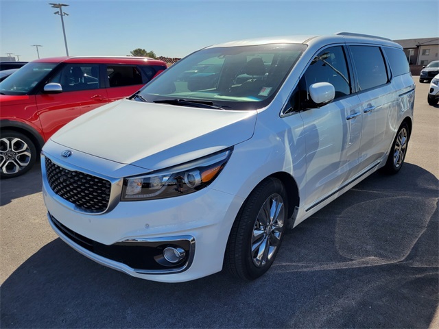 Recent Arrival!CARFAX One-Owner.Priced below KBB Fair Purchase Price!Snow White Pearl 2018 Kia Sedona SX Limited FWD 6-Speed Automatic with Sportmatic 3.3L V6 DGIIf you don't drive here, you can't save here!Awards: * 2018 KBB.com 10 Most Affordable 3-Row VehiclesPrice may not include recon fee. 3.041 Axle Ratio, 3rd row seats: split-bench, 4-Way Power Driver Lumbar Support, 4-Wheel Disc Brakes, 8 Speakers, 8-Way Power Driver Seat, 8-Way Power Passenger Seat, ABS brakes, Air Conditioning, Alloy wheels, AM/FM radio: SiriusXM, Apple CarPlay & Android Auto, Auto High-beam Headlights, Auto-dimming Rear-View mirror, Automatic temperature control, Brake assist, Bumpers: body-color, Cargo Net, CD player, Chrome wheels, Compass, Delay-off headlights, Driver door bin, Driver vanity mirror, Driver's Seat Integrated Memory System, Dual front impact airbags, Dual front side impact airbags, Electronic Stability Control, Emergency communication system: 911 Connect, Four wheel independent suspension, Front anti-roll bar, Front Bucket Seats, Front Captain Seats, Front Center Armrest, Front dual zone A/C, Front fog lights, Front reading lights, Fully automatic headlights, Garage door transmitter: HomeLink, Heated 2nd Row Seat Cushion, Heated door mirrors, Heated Front Seats, Heated front seats, Heated rear seats, Heated steering wheel, High intensity discharge headlights: Xenon, Illuminated entry, Leather Shift Knob, Leather steering wheel, Leather-Trimmed Seats, Low tire pressure warning, Memory seat, Navigation System, Occupant sensing airbag, Outside temperature display, Overhead airbag, Overhead console, Panic alarm, Passenger door bin, Passenger vanity mirror, Power door mirrors, Power driver seat, Power Liftgate, Power passenger seat, Power steering, Power windows, Radio: AM/FM/CD/MP3/SiriusXM Infinity Audio System, Rear air conditioning, Rear anti-roll bar, Rear reading lights, Rear window defroster, Rear window wiper, Reclining 3rd row seat, Remote keyless entry, Roof rack: rails only, Security system, Speed control, Speed-sensing steering, Split folding rear seat, Spoiler, Steering wheel mounted audio controls, Tachometer, Telescoping steering wheel, Tilt steering wheel, Traction control, Trip computer, Turn signal indicator mirrors, Variably intermittent wipers, Ventilated Front Seats, Ventilated front seats, and Wheels: 19" x 7.5J Alloy w/Chrome Finish.