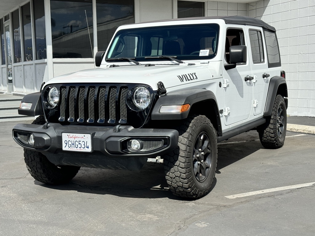 EASTER SALES BLOW OUT EVENT STARTS TODAY!!! COME CHECK OUT OUR HARD TO BEAT INVENTORY PRICES THAT HAVE BEEN SLASHED TO SAVE YOU MONEY. CALL (626) 899-9302 TO GET MORE INFORMATION** CUSTOMER PREFERRED PACKAGE **** ROCK-PROTECTION SILL RAILS **** ANTI-SPIN DIFFERENTIAL REAR AXLE WE SPECIALIZE IN ALL CREDIT PROFILES! See what we can do for you! Call to find out (626) 899-9302.Recent Arrival! Clean CARFAX.Odometer is 3780 miles below market average!Bright White Clearcoat2022 Jeep Wrangler Unlimited Willys 4WD 8-Speed Automatic 2.0L I4 DOHC**********All Pricing and Advertised Prices for any/all vehicles offered for sale does not include dealer installed accessories which can be purchased for an additional cost.********** The Factory Rebates may not be available on this vehicle if you elect to take advantage of a Special Alternative APR or Special Lease program. Some Factory Rebates are California Resident specific and may vary for residents of other states. NO sales to Dealers, Brokers or Exporters. For out of state purchase, customers must be present to purchase. If shipping is required, dealership must facilitate; no exceptions. Please contact us for special Multi-Vehicle or Fleet pricing. Prices are plus government fees and taxes, any finance charges, $85 documentary fee, $29 electronic registration fee, any emission testing charge and $1.75 per new tire state tire fee. *** We make every effort to provide accurate information, but please verify before purchasing. Leasing & financing available on approved credit. Trade-ins accepted. Subject to prior sale.