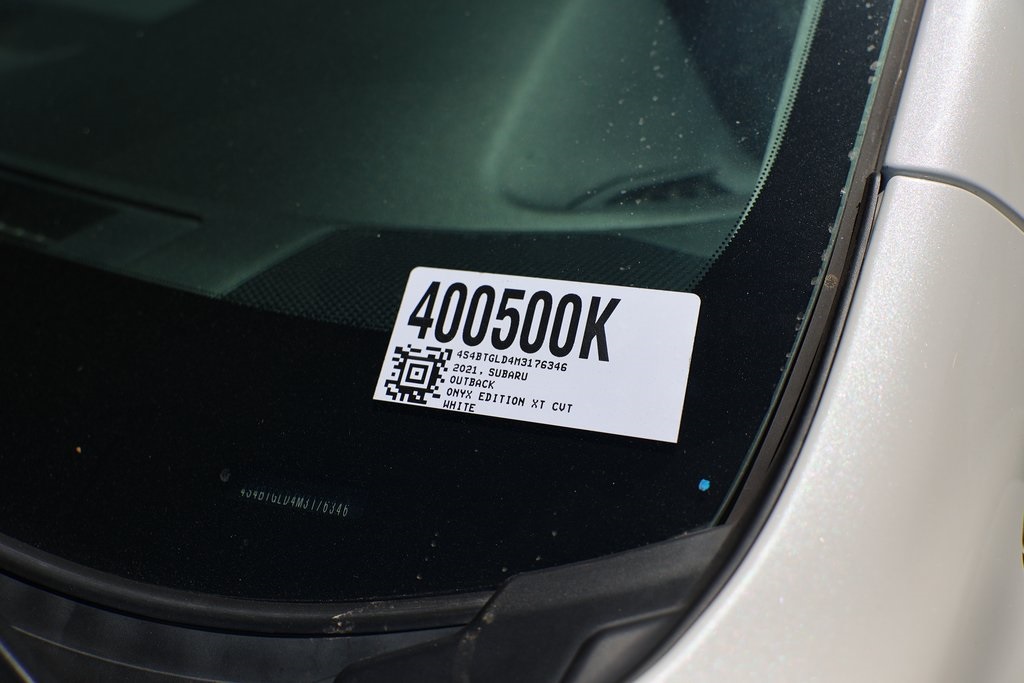 Crystal White Pearl 2021 Subaru Outback Onyx Edition XT AWD CVT Lineartronic 2.4L DOHC Air Conditioning, All-Weather Floor Liners, Auto-Dimming Exterior Mirror w/Approach Light, Brake assist, Dome Light LED Upgrade, Electronic Stability Control, Emergency communication system: STARLINK Safety and Security (Subscription Required), Exterior Parking Camera Rear, Fully automatic headlights, Heated Front Bucket Seats, Popular Package #2, Power Liftgate, Power Moonroof, Power Moonroof & Navigation & RAB, Radio: Subaru STARLINK 11.6" Multimedia Nav System, Rear Bumper Cover, Rear Seat Back Protector, Reverse Automatic Braking (RAB), Speed control, Splash Guards, STARLINK/Apple CarPlay/Android Auto, Wheels: 18" x 7J Black Aluminum Alloy.23/30 City/Highway MPG