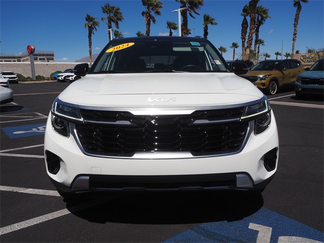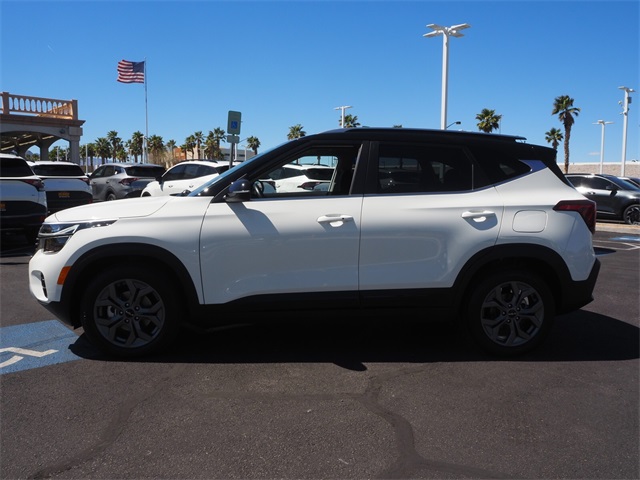Priced below KBB Fair Purchase Price!28/34 City/Highway MPGClear White/Black Roof 2024 Kia Seltos S FWD IVT 2.0L I4 MPIIf you don't drive here, you can't save here!Price may not include recon fee. Glossy Black Door Garnish Package (Glossy Black Door Garnish), 4-Wheel Disc Brakes, 6 Speakers, 6.052 Axle Ratio, ABS brakes, Air Conditioning, Alloy wheels, AM/FM radio: SiriusXM, Apple CarPlay & Android Auto, Auto High-beam Headlights, Automatic temperature control, Brake assist, Bumpers: body-color, Carpet Floor Mats, Cloth & Sofino Premium Leatherette Seat Trim, Delay-off headlights, Driver door bin, Driver vanity mirror, Dual front impact airbags, Dual front side impact airbags, Electronic Stability Control, Emergency communication system: 911 Connect, Exterior Parking Camera Rear, Front anti-roll bar, Front Bucket Seats, Front Center Armrest, Front fog lights, Front reading lights, Front wheel independent suspension, Fully automatic headlights, Heated door mirrors, Illuminated entry, Leather Shift Knob, Leather steering wheel, Low tire pressure warning, Navigation System, Occupant sensing airbag, Outside temperature display, Overhead airbag, Overhead console, Panic alarm, Passenger door bin, Passenger vanity mirror, Power door mirrors, Power steering, Power windows, Radio: AM/FM/HD/Satellite Display System, Rear seat center armrest, Rear window defroster, Rear window wiper, Remote keyless entry, Roof rack: rails only, Security system, Speed control, Speed-sensing steering, Split folding rear seat, Spoiler, Steering wheel mounted audio controls, Tachometer, Telescoping steering wheel, Tilt steering wheel, Traction control, Trip computer, Turn signal indicator mirrors, Variably intermittent wipers, and Wheels: 17" Alloy w/Dark Gray Finish.