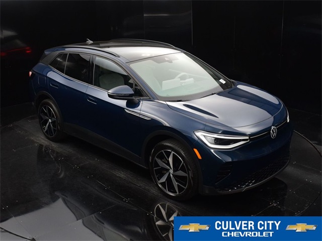 Recent Arrival! This 2023 Volkswagen ID.4 Pro S marks the pinnacle of Volkswagen's commitment to electric mobility, embodying a perfect blend of futuristic design, advanced technology, and eco-conscious performance. With its sleek and aerodynamic exterior, this all-electric SUV commands attention on the road, showcasing Volkswagen's signature style and innovation. Inside, the ID.4 Pro S offers a spacious and modern cabin, featuring premium materials and cutting-edge technology features that cater to both comfort and convenience. Powered by an efficient electric drivetrain, the ID.4 Pro S delivers instant torque and whisper-quiet operation, offering a smooth and responsive ride with zero emissions. With its impressive range and rapid charging capabilities, this 2023 Volkswagen ID.4 Pro S redefines what it means to drive electric, providing an exhilarating and environmentally friendly driving experience for all.At Culver City Chevrolet, our entire team works together to provide you with the ultimate Chevrolet shopping experience. We are family owned and operated, so we treat you just like you are part of our family. We are also very passionate about serving the community in which we work, live and play! From the Little League teams we support, to the next customer that walks in the door, we are committed to doing the right thing. Our goal is to exceed your expectations, deliver the best service possible, and make car shopping fun again. We offer a large inventory of Chevrolet cars, trucks, SUVs and electric vehicles, and an incredible lineup of luxury vehicles for sale as well! Just find the specific vehicle that fits your needs and schedule your test drive by calling 424-216-6027 today. We provide plenty of buying and leasing options for drivers in the Los Angeles area. WE LOOK FORWARD TO BEING THE NEW AND USED CHEVROLET VEHICLE SOURCE FOR YOU IN CULVER CITY!2023 Volkswagen ID.4 Pro S Blue Electric Motor 104/93 City/Highway MPG 104/93 City/Highway MPG KBB Fair Market Range Low: $35,984CARFAX One-Owner.GPS Tracking System-S.W.A.T. $1995, 4 doors, 40+ MPG, Alloy Wheels, Android Auto, Apple CarPlay/Android Auto, Automatic, AWD, Backup Camera, Bluetooth, Brake Assist, CarPlay, Cruise Control, Electric, Heated Seats, Heated Steering Wheel, Keyless Entry, Leather Seats, Memory Seat, Multi Zone Climate Control, Navigation System, Power Liftgate, Rain Sensing Wipers, Security System, Stability Control, Steering Wheel Controls, USB Port.