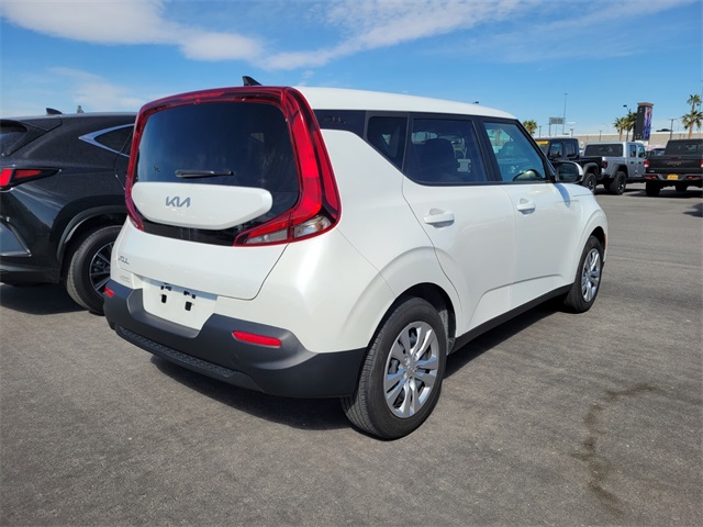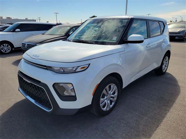 Recent Arrival!CARFAX One-Owner.Priced below KBB Fair Purchase Price!Odometer is 29891 miles below market average!29/35 City/Highway MPGSnow White Pearl 2022 Kia Soul LX FWD IVT 2.0L I4 DOHCIf you don't drive here, you can't save here!Price may not include recon fee. Kia Certified Pre-Owned Certified, 16" x 6.5" Steel Wheels, 4-Wheel Disc Brakes, 6 Speakers, ABS brakes, Air Conditioning, AM/FM radio, Apple CarPlay & Android Auto, Brake assist, Bumpers: body-color, Carpeted Floor Mats, Delay-off headlights, Driver door bin, Driver vanity mirror, Dual front impact airbags, Dual front side impact airbags, Electronic Stability Control, Exterior Parking Camera Rear, Front anti-roll bar, Front Bucket Seats, Front Center Armrest, Front reading lights, Front wheel independent suspension, Fully automatic headlights, Illuminated entry, Low tire pressure warning, Occupant sensing airbag, Outside temperature display, Overhead airbag, Overhead console, Panic alarm, Passenger door bin, Passenger vanity mirror, Power door mirrors, Power steering, Power windows, Radio: AM/FM/MP3 Audio System, Rear Bumper Applique, Rear window defroster, Rear window wiper, Remote keyless entry, Speed control, Speed-sensing steering, Split folding rear seat, Steering wheel mounted audio controls, Tachometer, Telescoping steering wheel, Tilt steering wheel, Traction control, Trip computer, Variably intermittent wipers, and Woven & Tricot Cloth Seat Trim.