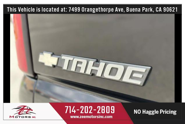 THIS VEHICLE IS LOCATED AT OUR BUENA PARK LOCATION: 7499 ORANGETHORPE AVE, BUENA PARK CA 90621. Please Call us at 714-202-2809 Ext #2 , Or email us at BUENAPARK@ZEEMOTORSINC.COM.**** SUPER CLEAN TAHOE WITH Z71 PACKAGE ***** 1-OWNER.* Clean Title. * Clean Carfax. * No Accidents.* Very Well Maintained Vehicle, Service records available on CARFAX. * Very Clean Inside and Outside.* Passed Safety inspection and Smog Check.Attention to all buyers: All special prices are cash price and it does not include sales tax, license and registration fee, documentation fee, smog fee or any dealer add-ons / accessories. Additional financing charges may apply on approved credit. While great effort is made to ensure the accuracy of the information provided on this site, errors do occur so please verify information with a team member. This is easily done by contacting us via phone or email.
