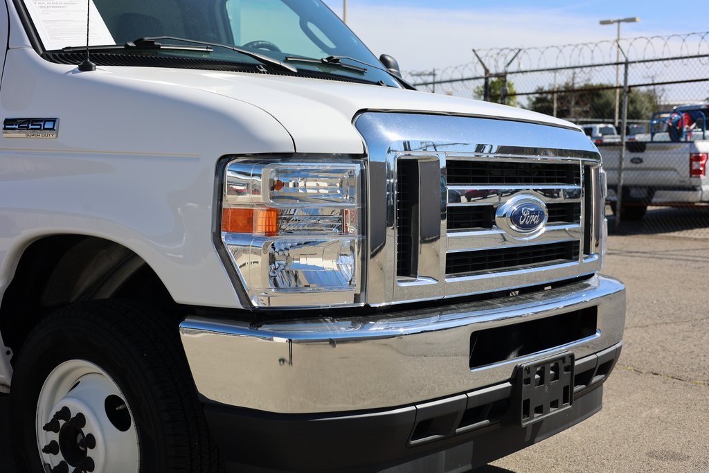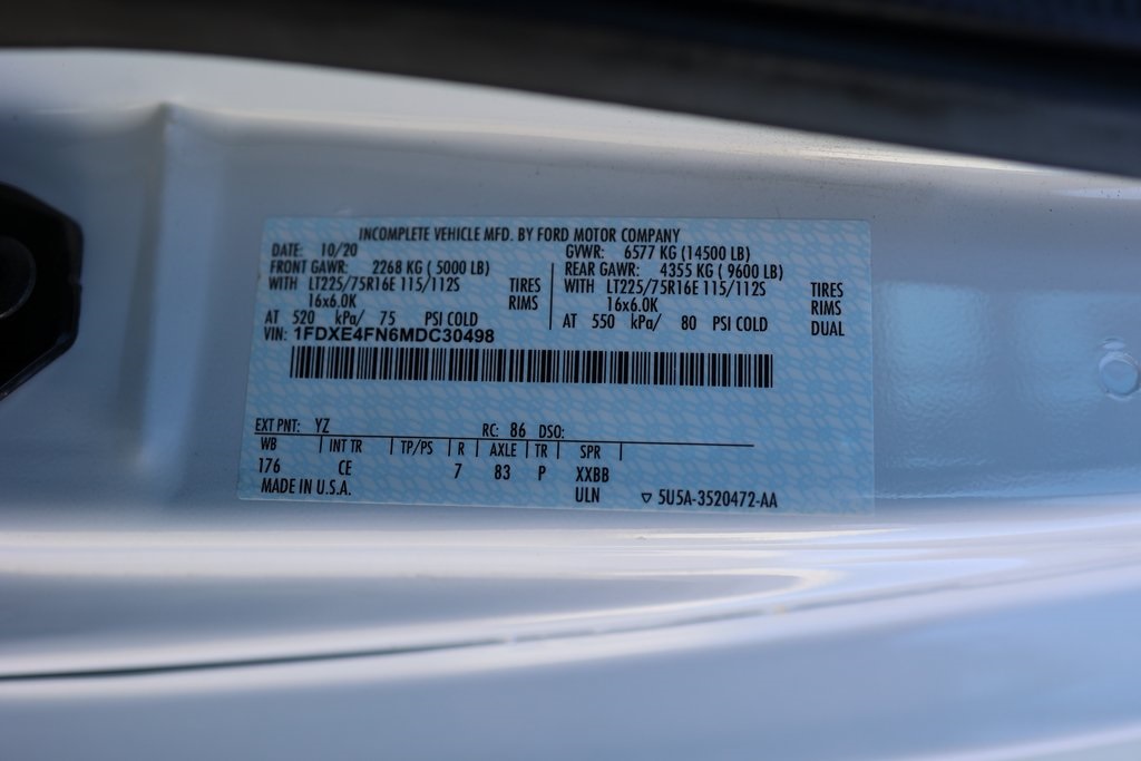Oxford White 2021 Ford E-450SD RWD 6-Speed Automatic with Overdrive 7.3L V8 16" x 6" White Painted Steel Wheels, Air Conditioning, B-Pillar Trim Kit, Cruise Control, Electrochromic Rearview Mirror w/Camera Display, Electronic Stability Control, Frame Pucks (Isolators), Fully automatic headlights, GVWR: 14,500 lb Payload Package, Manual Telescoping Trailer Tow Mirrors, Rear View Camera Kit, Remote Keyless Entry.Recent Arrival!