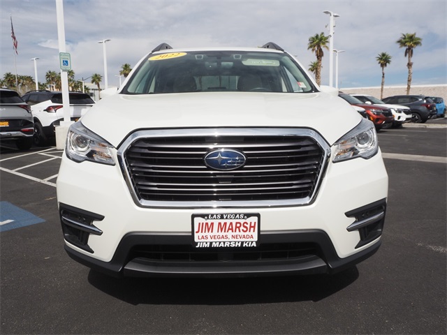 CARFAX One-Owner.Priced below KBB Fair Purchase Price!Odometer is 885 miles below market average!21/27 City/Highway MPGWhite 2022 Subaru Ascent Premium AWD Lineartronic CVT 2.4L 4-Cylinder DOHC 16VIf you don't drive here, you can't save here!Price may not include recon fee. 3rd row seats: bench, 4-Wheel Disc Brakes, 6 Speakers, ABS brakes, Air Conditioning, Alloy wheels, AM/FM radio: SiriusXM, Auto High-beam Headlights, Automatic temperature control, Axle Ratio: 4.44, Brake assist, Bumpers: body-color, CD player, Delay-off headlights, Driver door bin, Driver vanity mirror, Dual front impact airbags, Dual front side impact airbags, Electronic Stability Control, Emergency communication system: STARLINK Safety and Security (Subscription Required), Exterior Parking Camera Rear, Four wheel independent suspension, Front anti-roll bar, Front Bucket Seats, Front Center Armrest, Front dual zone A/C, Front reading lights, Fully automatic headlights, Heated door mirrors, Heated Front Bucket Seats, Heated front seats, Illuminated entry, Knee airbag, Low tire pressure warning, Occupant sensing airbag, Outside temperature display, Overhead airbag, Overhead console, Panic alarm, Passenger door bin, Passenger vanity mirror, Power door mirrors, Power driver seat, Power steering, Power windows, Radio data system, Radio: Subaru STARLINK 8.0" Multimedia Plus System, Rear air conditioning, Rear anti-roll bar, Rear reading lights, Rear window defroster, Rear window wiper, Reclining 3rd row seat, Remote keyless entry, Roof rack: rails only, Security system, Speed control, Spill Resistant Coated Cloth Upholstery, Split folding rear seat, Spoiler, STARLINK/Apple CarPlay/Android Auto, Steering wheel mounted audio controls, Tachometer, Telescoping steering wheel, Tilt steering wheel, Traction control, Trip computer, Variably intermittent wipers, and Wheels: 18" x 7.5 J Gray Alloy w/Machine Finish.