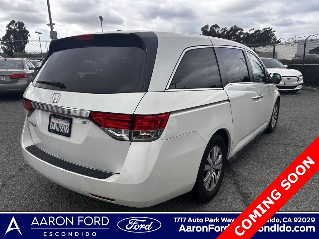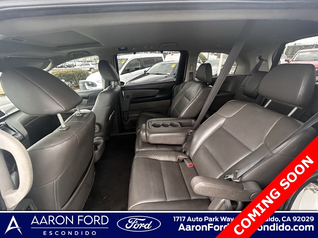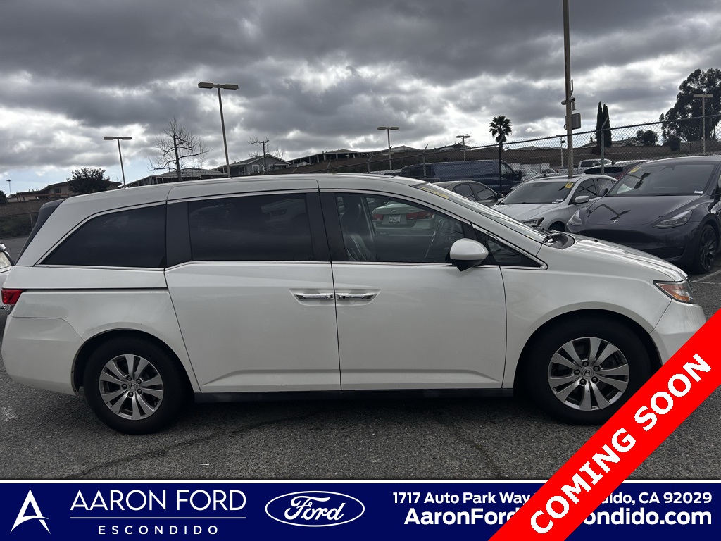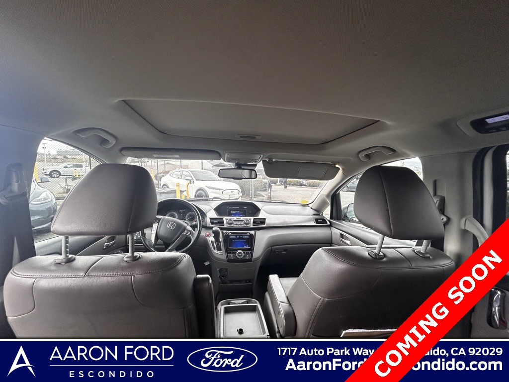 White Diamond Pearl 2015 Honda Odyssey EX-L FWD 6-Speed Automatic 3.5L V6 SOHC i-VTEC 24V 17" x 7" Alloy Wheels, Air Conditioning, Exterior Parking Camera Rear, Fully automatic headlights, Heated Front Bucket Seats, Leather Seat Trim, Power Liftgate, Power moonroof, Rear air conditioning.Recent Arrival! 19/28 City/Highway MPGAwards: * 2015 KBB.com 15 Best Family Cars * 2015 KBB.com Best Buy Awards * 2015 KBB.com Brand Image AwardsKelley Blue Book Brand Image Awards are based on the Brand Watch(tm) study from Kelley Blue Book Market Intelligence. Award calculated among non-luxury shoppers. For more information, visit www.kbb.com. Kelley Blue Book is a registered trademark of Kelley Blue Book Co., Inc.Reviews: * Agile handling; fuel-efficient V6; quiet cabin; configurable second-row seat; easy-to-fold third-row seat; top crash test scores. Source: Edmunds * The Honda Odyssey is a clear choice for a family looking for a practical, comfortable, fuel-efficient, feature-packed 8-passenger hauler. It’s easily better at those tasks than a full-sized SUV, and there’s nothing like those sliding doors when you’re in a tight parking lot. Source: KBB.com * The Honda Odyssey has a wide, low stance with a modern aerodynamic feel. Its fresh, angled lines, combined with updates to its front end, grille, and rear taillights result in a bold design. Take into consideration its great records for reliability and safety combined with fact that it is enjoyable and comfortable to drive, and this is one vehicle should not be missed. Depending on the trim level you select, it can seat up to 7 or 8 passengers. The third row seats are split, and each seat can fold flat into the floor. The outside seats in the second row can slide towards the walls, so that three child safety seats can fit next to one another. The Multi-Function 2nd-Row Center Seat, on EX trims and above, can either fold forward to become a center console or slide forward 5.5 inches to enable a child seat to be closer to the driver and front passenger. For extra cargo space, one or all of the second row seats can be removed as well. Powering the Odyssey is a 3.5L V6 engine, with 248 hp, which gets an EPA estimated 19 MPG City and 28 MPG hwy. The base Odyssey, comes standard with such items as a rearview camera, an AM FM CD Radio with 7 speakers and a color 8-inch interface screen, Bluetooth connectivity, and power front seats. Higher trims come with features like power sliding doors, LaneWatch camera system, navigation, 3-zone climate control, leather, and a power lift tailgate. The top-of-the-line Touring Elite trim gives you things like the amazing Honda DVD Ultrawide Rear Entertainment System, and a premium 12 speaker sound system with surround sound. The Touring Elite also gives you the convenience of the innovative HondaVac, which is a vacuum cleaner integrated with the car to help fight day-to-day messes. Source: The Manufacturer Summary