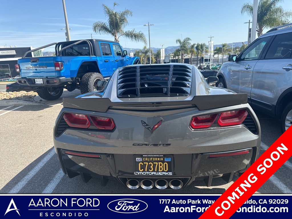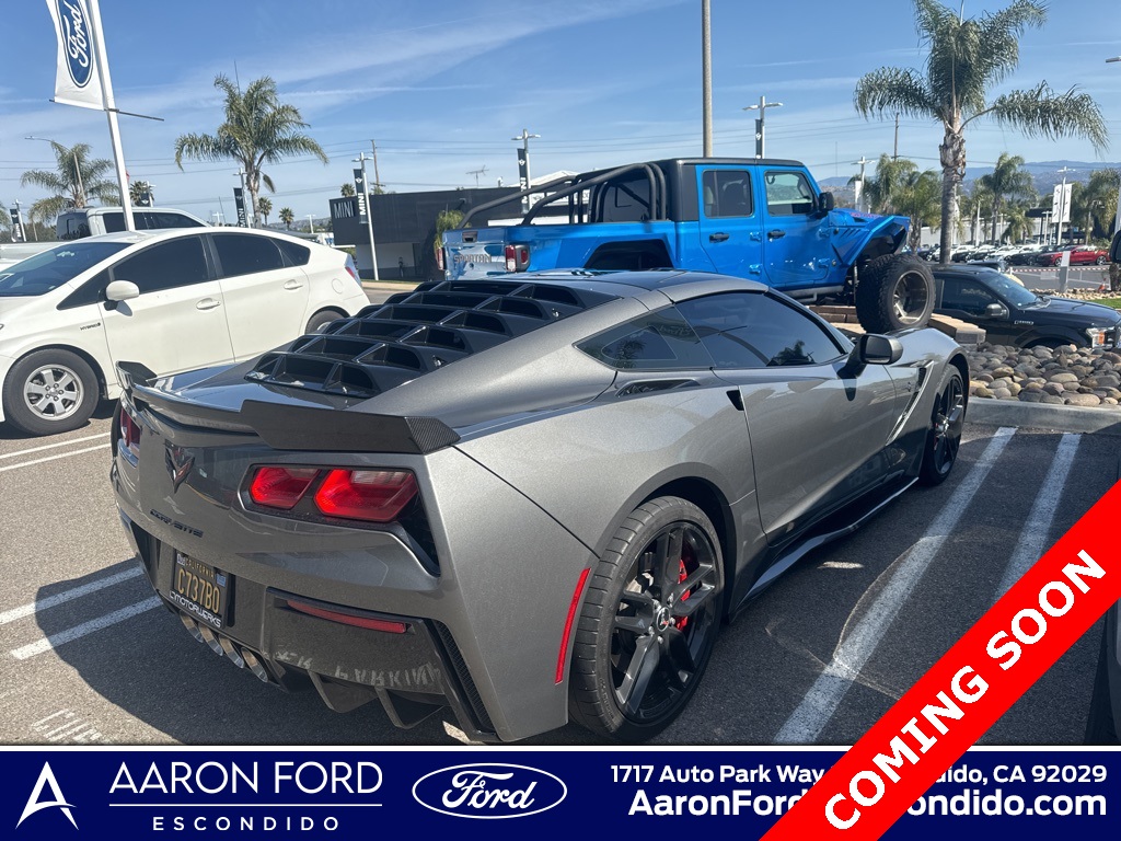 Shark Gray Metallic 2015 Chevrolet Corvette Stingray 2LT RWD 8 Speed Paddle Shift with Automatic Modes 6.2L V8 2LT Interior Trim, Auto-Dimming Inside Frameless Rearview Mirror, Battery Protection Package, Body-Color Outside Heated Power-Adjustable Mirrors, Body-Color Z51-Style Spoiler, Bose Advanced 10-Speaker Audio System Feature, Cargo Net, Exterior Parking Camera Rear, Fully automatic headlights, Head-Up Display, Heated & Vented Driver & Passenger Seats, High-Intensity Discharge Headlights, Luggage Shade, Memory Package, Performance Exhaust, Power Lumbar/Bolster Seat Adjusters, Preferred Equipment Group 2LT, Theft Deterrent System, Universal Home Remote, Visible Carbon Fiber Removable Roof Panel, Wheels: 19" x 8.5" Fr & 20" x 10" Rr 5-Split Spoke, ZF1 Appearance Package.Recent Arrival! 16/29 City/Highway MPGAwards: * JD Power Automotive Performance, Execution and Layout (APEAL) Study * Car and Driver 10 Best Cars * Ward's 10 Best Engines * 2015 KBB.com Best Buy Awards * 2015 KBB.com Best Resale Value AwardsCar and Driver, January 2017.Reviews: * If you relish the idea of owning one of the best performance-car bargains of the last 50 years, but without feeling shortchanged, you’re going to love the 2015 Chevrolet Corvette Stingray. For the Z06, you’ll love it if you like performance that crushes European exotics costing twice as much. Source: KBB.com * Awesome V8 power; racetrack-ready handling and braking; comfortable highway cruiser; attractive, high-tech interior; coupe's roomy cargo area; astounding value. Source: Edmunds * With its sculpted athletic exterior and driver-oriented cockpit, the 2015 Stingray is a beautiful weapon of ingenious design is purpose-driven. Carbon-fiber and carbon-nano-composite structures reduce weight even further to achieve optimal handling and acceleration. Provocative, purposeful and sculpted for optimal performance, the Stingray is light and lean. Increased downforce keeps the vehicle planted, while its functional exterior vents create a totally new breathing experience to reduce lift and drag. The advanced ventilation systems help air flow from front to back, cooling critical components of the powertrain. Illuminated by innovative digital features and intelligent driver controls, the cockpit is a stunning change from your typical interior scenery. An ingenious available color Head-Up Display complements the customizable dual display featuring two 8-inch screens. Grade A leather hand-selected and crafted to adorn a new generation of elegance. Completely redesigned, the 6.2L V8 engine boasts up to an estimated 460hp, 465 lb.-ft. of torque, plus 0-60 times of 3.8 seconds. This is complemented with a 7-speed transmission. Intelligent sensors anticipate gear selections and match engine speed for smooth transitions during both upshifts and downshifts. 5 driving modes are available to select from altering up to 12 variables to situate you for any road. The MyLink system begins with a retractable 8-inch diagonal high-definition color touch-screen. Using steering wheel controls, hand gesture and voice recognition capabilities, you can talk and text hands-free, stream HD Radio and third-party music services like Pandora, plus access a broad range of functions including OnStar and available navigation plus 4G LTE. Source: The Manufacturer Summary