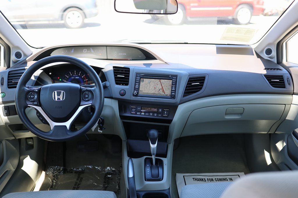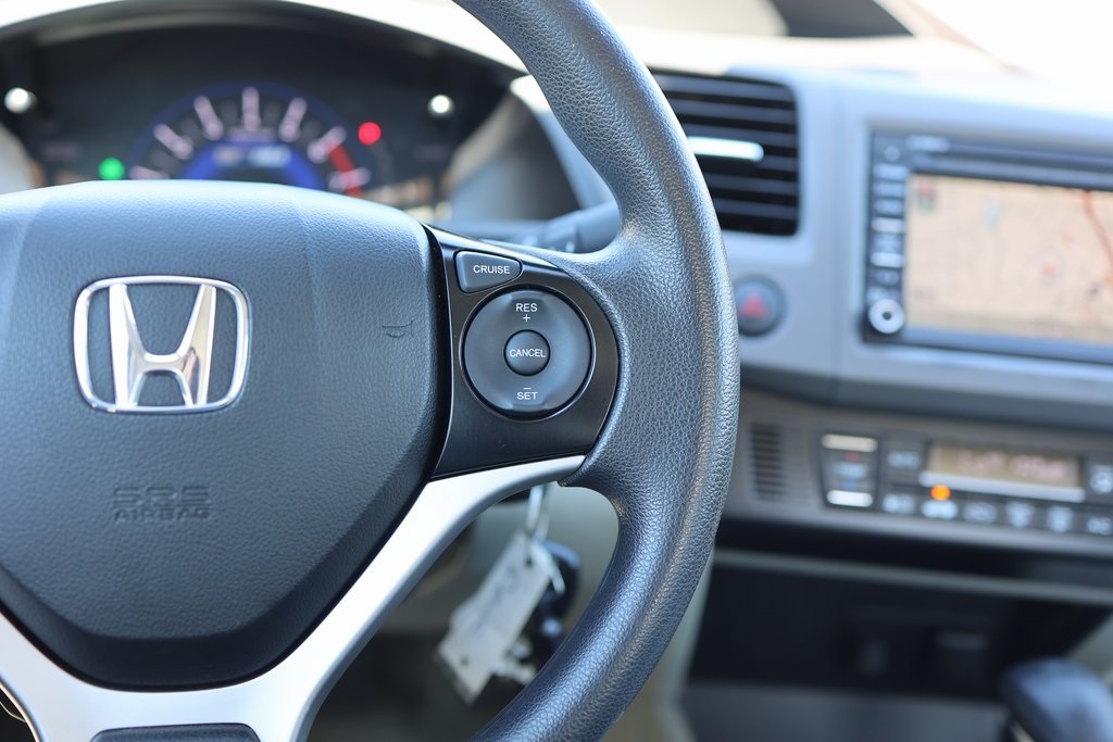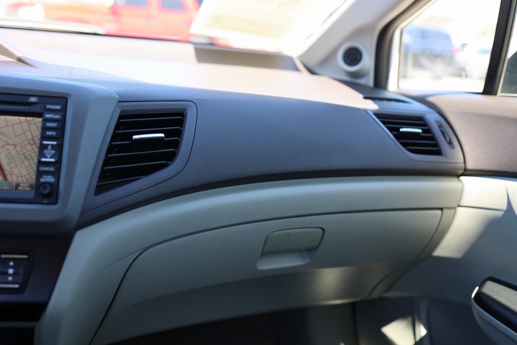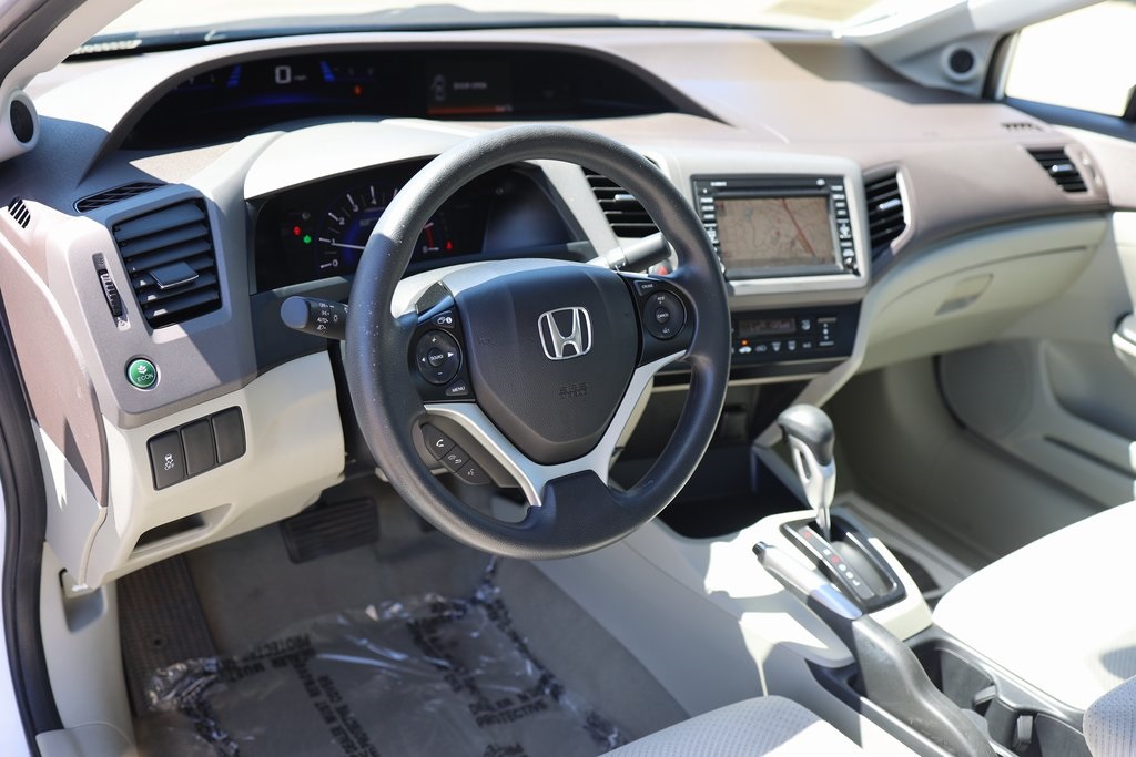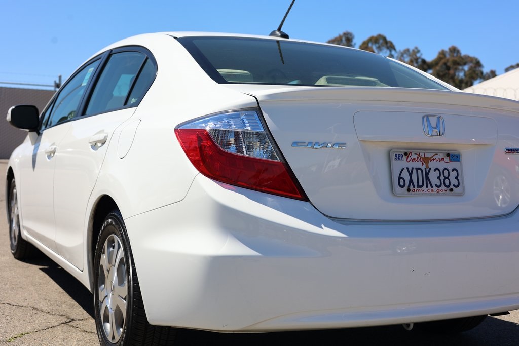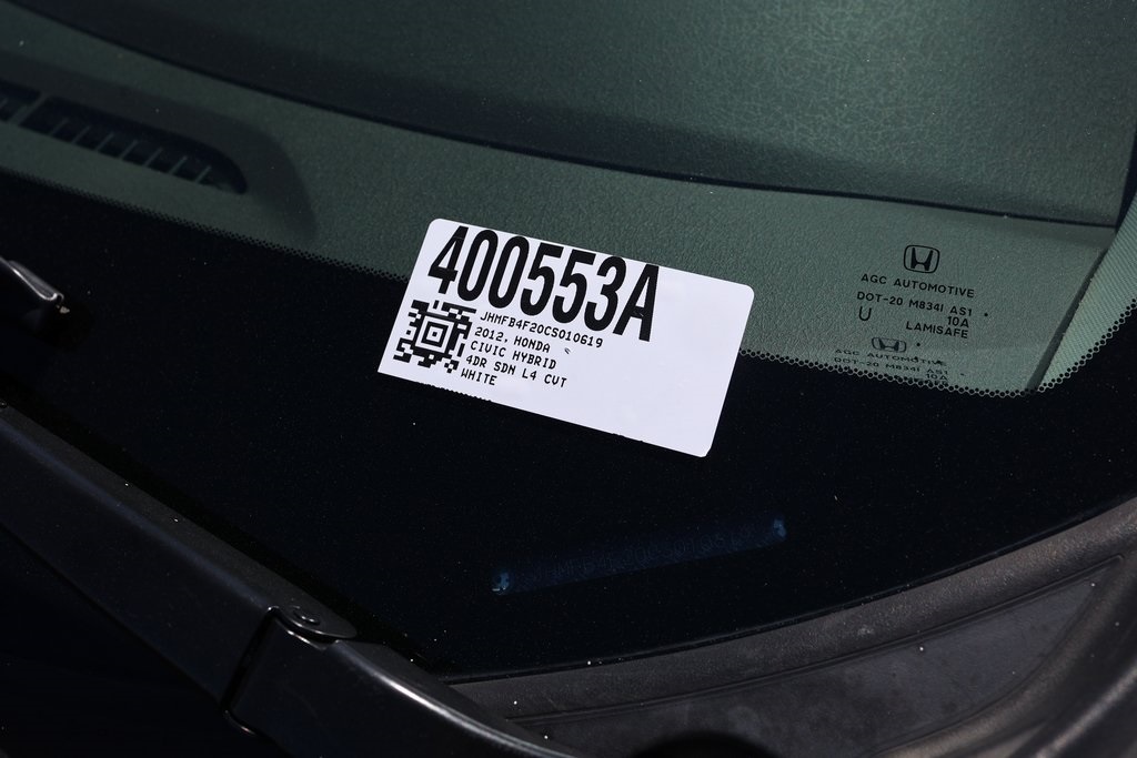 Taffeta White 2012 Honda Civic Hybrid FWD CVT 1.5L I4 SOHC 8V i-VTEC Stone w/Cloth Seat Trim, 15" Lightweight Alloy Wheels, Air Conditioning, Front Bucket Seats, Fully automatic headlights.Recent Arrival! 44/44 City/Highway MPGAwards: * Green Car Journal 2012 Green Car of the Year * 2012 KBB.com Brand Image AwardsKelley Blue Book Brand Image Awards are based on the Brand Watch(tm) study from Kelley Blue Book Market Intelligence. Award calculated among non-luxury shoppers. For more information, visit www.kbb.com. Kelley Blue Book is a registered trademark of Kelley Blue Book Co., Inc.Based on 2017 EPA mileage ratings. Use for comparison purposes only. Your mileage will vary depending on how you drive and maintain your vehicle, driving conditions and other factors.Reviews: * * Engine choices include hybrid and natural gas versions * Excellent fuel economy * Relatively spacious for a compact sedan or coupe * Well-tuned suspension offering comfort with control Source: KBB.com