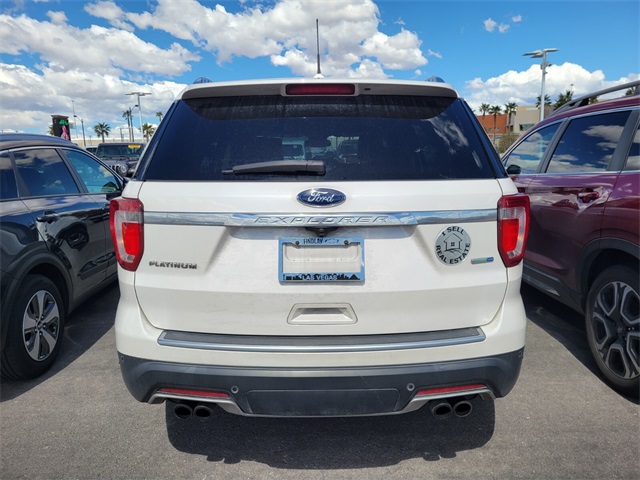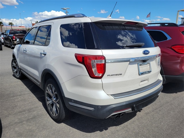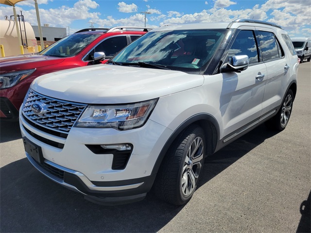 Recent Arrival!Priced below KBB Fair Purchase Price!White Platinum 2018 Ford Explorer Platinum 4WD 6-Speed Automatic with Select-Shift 3.5L V6 4WD.If you don't drive here, you can't save here!Awards: * 2018 KBB.com Brand Image Awards * 2018 KBB.com 10 Most Awarded BrandsPrice may not include recon fee. Equipment Group 600A, 4WD, 12 Speakers, 3.16 Axle Ratio, 3rd row seats: split-bench, 4-Wheel Disc Brakes, ABS brakes, Adjustable pedals, Air Conditioning, Alloy wheels, AM/FM radio: SiriusXM, AppLink/Apple CarPlay and Android Auto, Auto High-beam Headlights, Auto tilt-away steering wheel, Auto-dimming door mirrors, Auto-dimming Rear-View mirror, Automatic temperature control, Brake assist, Bumpers: body-color, CD player, Compass, Delay-off headlights, Driver door bin, Driver vanity mirror, Dual front impact airbags, Dual front side impact airbags, Electronic Stability Control, Emergency communication system: SYNC 3 911 Assist, Exterior Parking Camera Rear, Four wheel independent suspension, Front & Second Row Floor Liners, Front anti-roll bar, Front Bucket Seats, Front Center Armrest, Front dual zone A/C, Front fog lights, Front reading lights, Fully automatic headlights, Garage door transmitter, Genuine wood dashboard insert, Genuine wood door panel insert, Heated door mirrors, Heated front seats, Heated rear seats, Heated steering wheel, Illuminated entry, Knee airbag, Lane Departure Warning System, Leather steering wheel, Low tire pressure warning, Memory seat, Navigation System, Nirvana Multi Contour Leather Cooled Bucket Seats, Occupant sensing airbag, Outside temperature display, Overhead airbag, Overhead console, Panic alarm, Passenger door bin, Passenger vanity mirror, Pedal memory, Power door mirrors, Power driver seat, Power Liftgate, Power moonroof, Power passenger seat, Power steering, Power windows, Premium audio system: Sony, Radio data system, Radio: Premium Sound from Sony, Rain sensing wipers, Rear air conditioning, Rear anti-roll bar, Rear reading lights, Rear seat center armrest, Rear window defroster, Rear window wiper, Remote keyless entry, Roof rack: rails only, Security system, Speed control, Speed-sensing steering, Speed-Sensitive Wipers, Split folding rear seat, Spoiler, Steering wheel memory, Steering wheel mounted audio controls, SYNC 3 Communications & Entertainment System, Tachometer, Telescoping steering wheel, Tilt steering wheel, Traction control, Trip computer, Turn signal indicator mirrors, Variably intermittent wipers, Ventilated front seats, Wheels: 20" Bright Machined Face Aluminum, and Wheels: 20" Premium Painted Machined Aluminum.