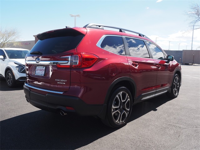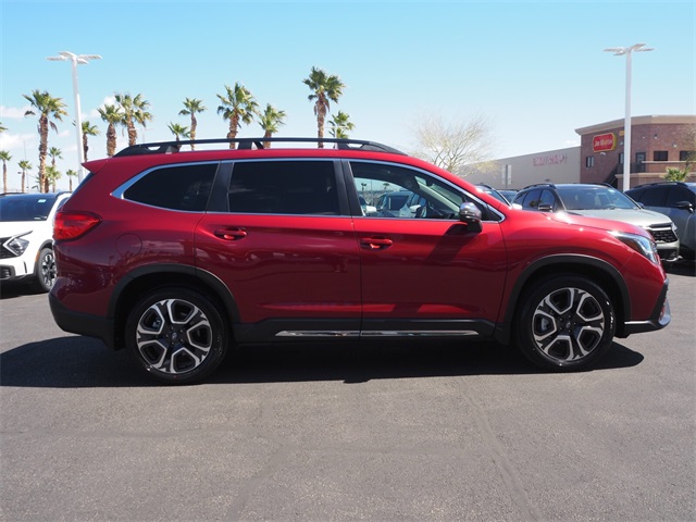 Priced below KBB Fair Purchase Price!Odometer is 3965 miles below market average!Red 2023 Subaru Ascent Limited AWD Lineartronic CVT 2.4L 4-Cylinder DOHC 16VIf you don't drive here, you can't save here!Price may not include recon fee. 3rd row seats: bench, 4-Wheel Disc Brakes, 6 Speakers, ABS brakes, Air Conditioning, Alloy wheels, AM/FM radio: SiriusXM, Auto High-beam Headlights, Auto-dimming Rear-View mirror, Automatic temperature control, Axle Ratio: 4.44, Brake assist, Bumpers: body-color, Delay-off headlights, Driver door bin, Driver vanity mirror, Dual front impact airbags, Dual front side impact airbags, Electronic Stability Control, Emergency communication system: STARLINK Safety and Security (Subscription Required), Exterior Parking Camera Rear, Four wheel independent suspension, Front anti-roll bar, Front Bucket Seats, Front Center Armrest, Front dual zone A/C, Front fog lights, Front reading lights, Fully automatic headlights, Garage door transmitter: HomeLink, Heated door mirrors, Heated Front Bucket Seats, Heated front seats, Heated rear seats, Heated steering wheel, Illuminated entry, Knee airbag, Leather Shift Knob, Leather steering wheel, Low tire pressure warning, Memory seat, Occupant sensing airbag, Outside temperature display, Overhead airbag, Overhead console, Panic alarm, Passenger door bin, Passenger vanity mirror, Perforated Leather-Trimmed Upholstery, Power door mirrors, Power driver seat, Power Liftgate, Power passenger seat, Power steering, Power windows, Radio data system, Radio: Subaru STARLINK 11.6" Multimedia Plus System, Rear air conditioning, Rear anti-roll bar, Rear reading lights, Rear seat center armrest, Rear window defroster, Rear window wiper, Reclining 3rd row seat, Remote keyless entry, Roof rack: rails only, Security system, Speed control, Speed-sensing steering, Split folding rear seat, Spoiler, STARLINK/Apple CarPlay/Android Auto, Steering wheel mounted audio controls, Tachometer, Telescoping steering wheel, Tilt steering wheel, Traction control, Trip computer, Turn signal indicator mirrors, Variably intermittent wipers, and Wheels: 20" x 7.5 J Dk Gray Alloy w/Machine Finish.