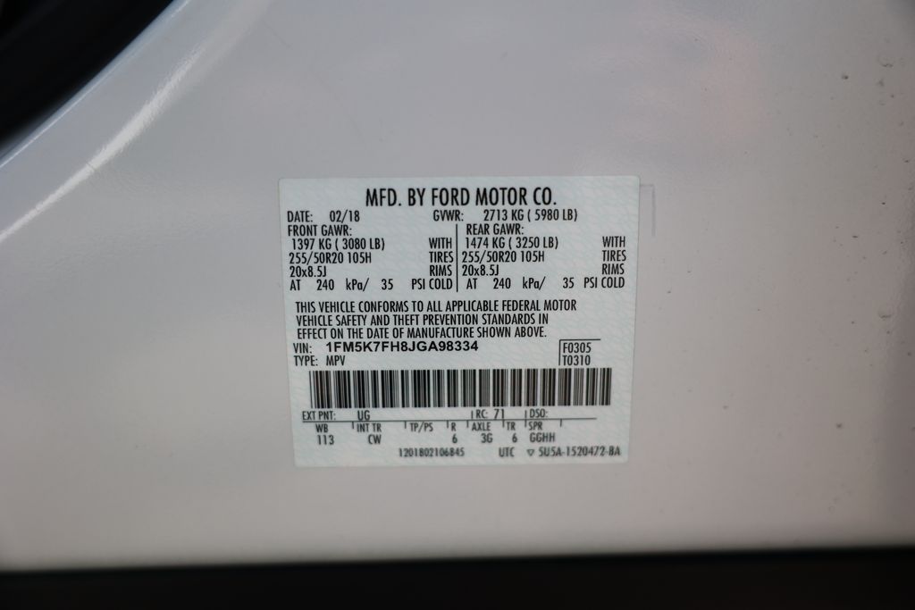 White Platinum 2018 Ford Explorer Limited FWD 6-Speed Automatic with Select-Shift 2.3L I4 EcoBoostOdometer is 22398 miles below market average! 19/27 City/Highway MPGAwards: * 2018 KBB.com Brand Image Awards * 2018 KBB.com 10 Most Awarded Brands