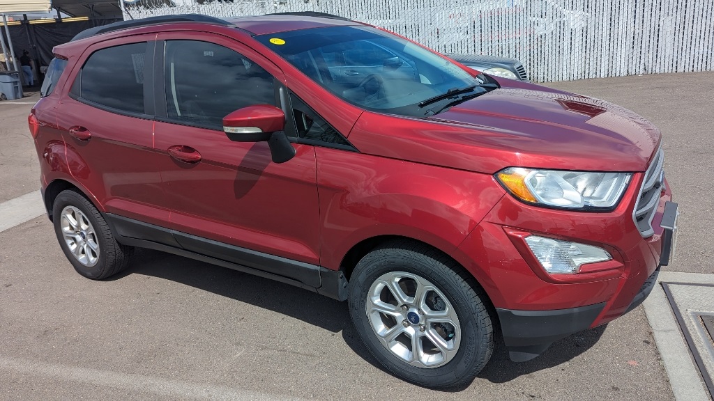 Race Red 2019 Ford EcoSport SE FWD 6-Speed Automatic EcoBoost 1.0L I3 GTDi DOHC Turbocharged VCT 110V/150W AC Power Outlet, 7 Speakers, Air Conditioning, Ambient Lighting, AppLink/Apple CarPlay and Android Auto, BLIS Blind Spot Information System, Cargo Mat, Equipment Group 200A, Exterior Parking Camera Rear, FordPass Connect, Front & Rear Floor Liners, Fully automatic headlights, Interior Protection Package, Power moonroof, Rear Parking Sensors, SE Convenience Package, SiriusXM Traffic & Travel Link, SYNC 3 Communications & Entertainment System w/47B, Unique Cloth Heated Front Bucket Seats, Wheels: 16" Shadow Silver-Painted Aluminum.Recent Arrival! 27/29 City/Highway MPG