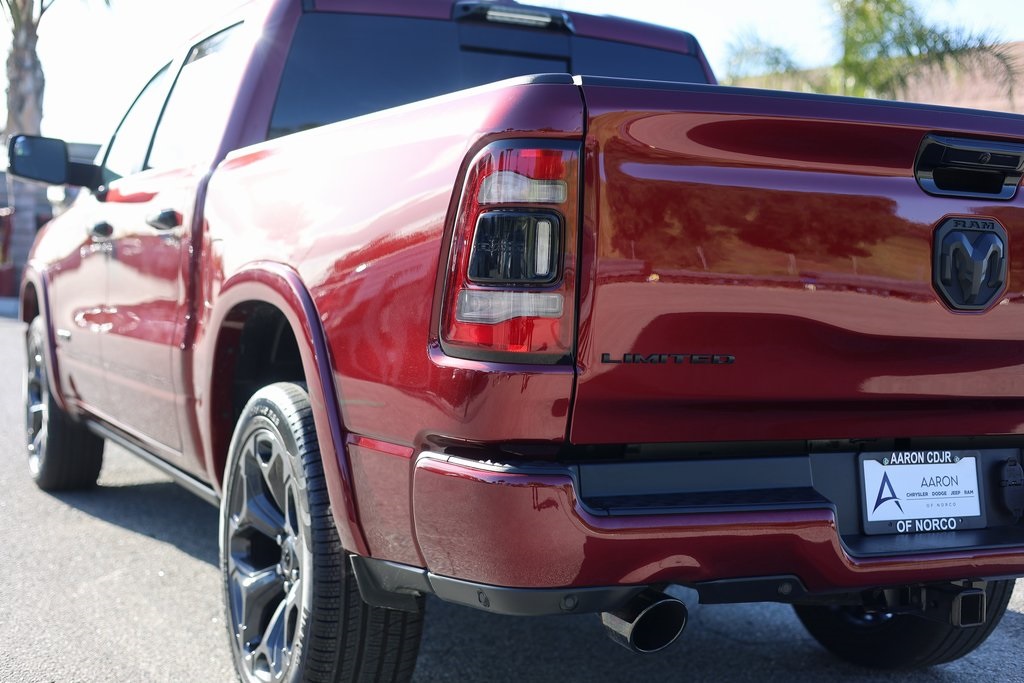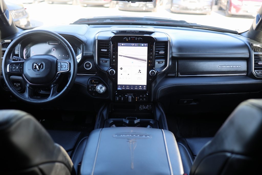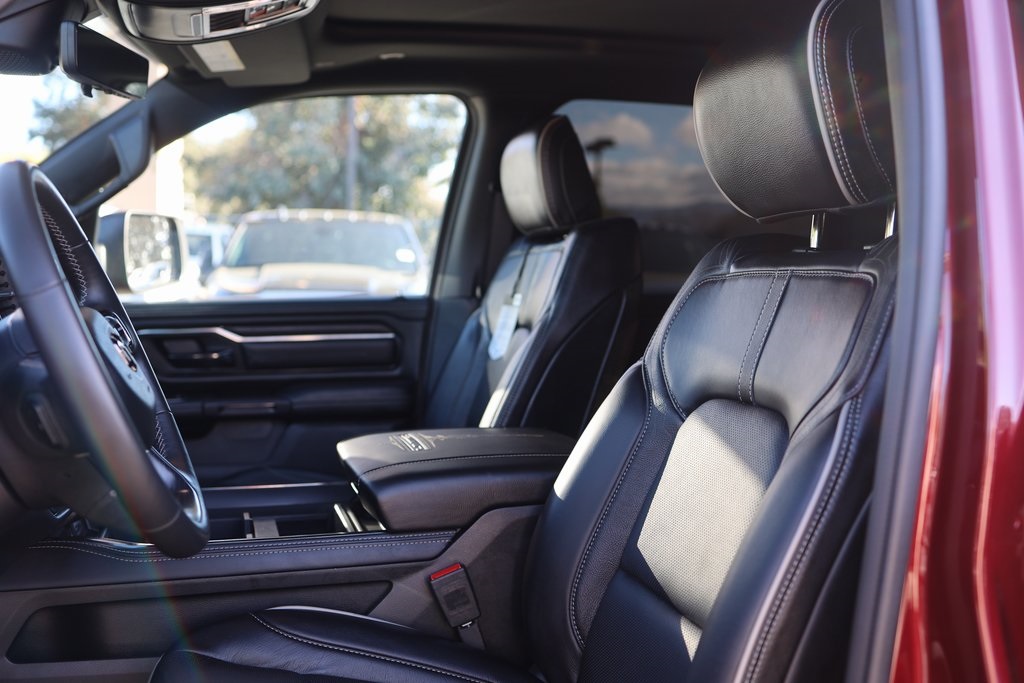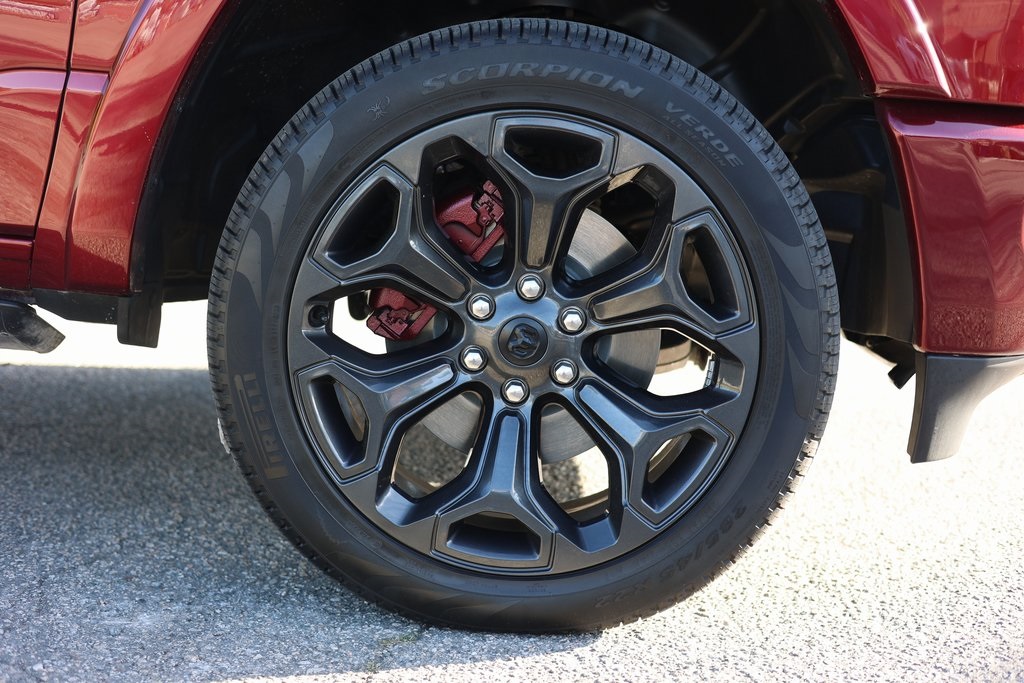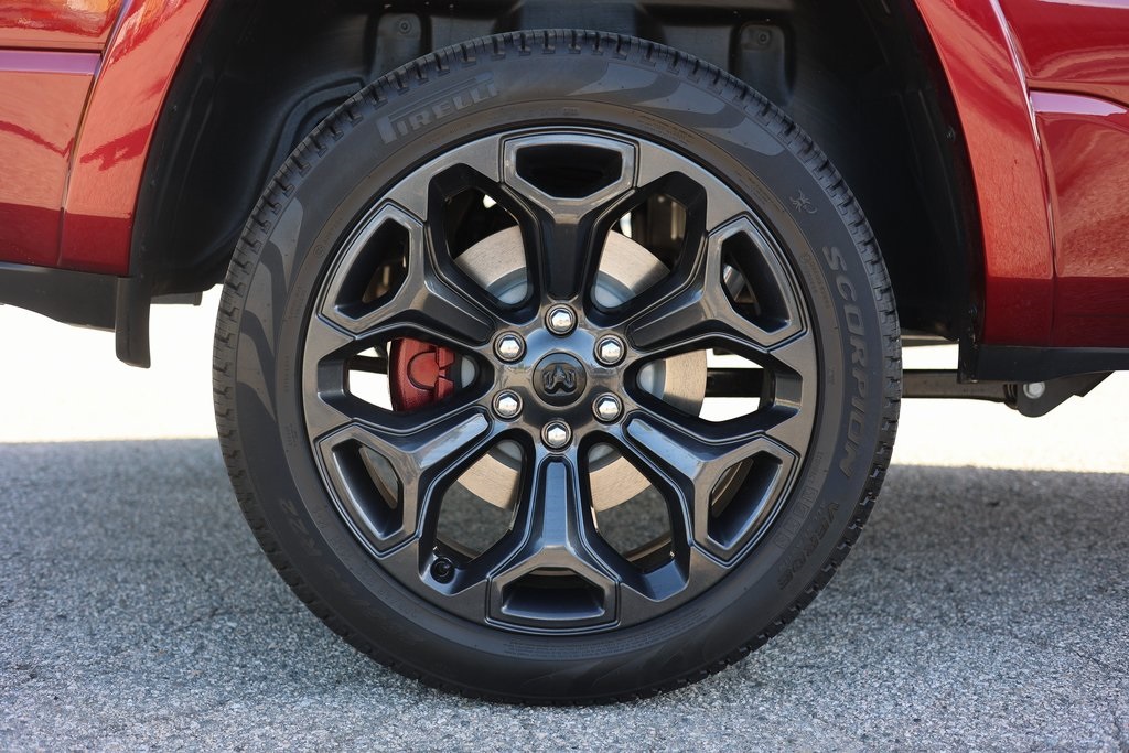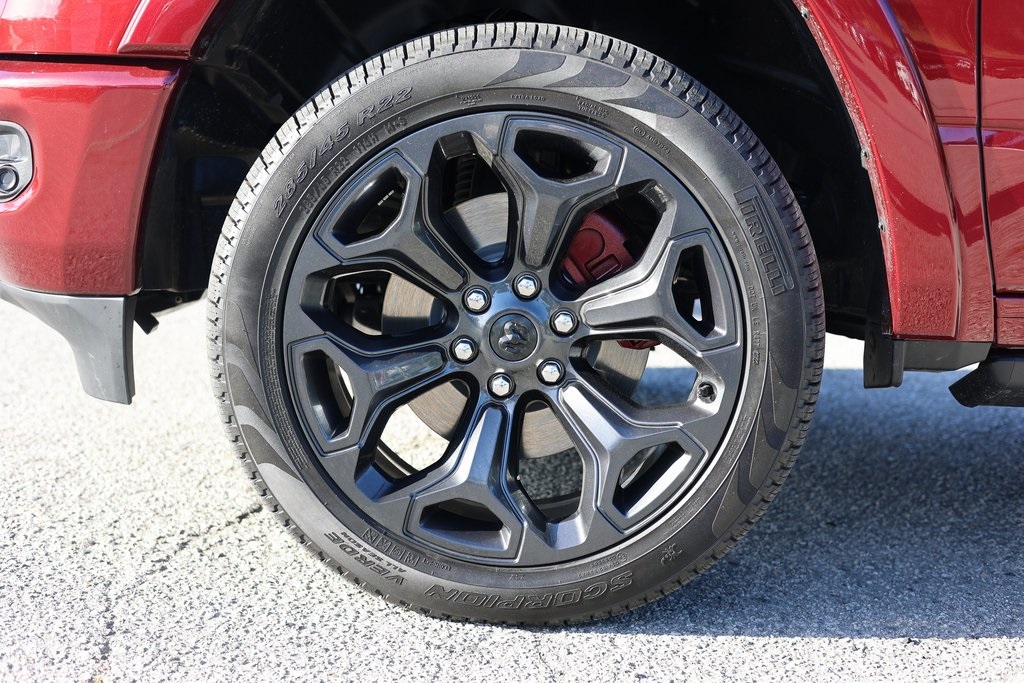 1500 Limited Night Edition, 4D Crew Cab, HEMI 5.7L V8 Multi Displacement VVT eTorque, 8-Speed Automatic, 4WD, Delmonico Red Pearlcoat, Accent Color Door Handles, Accent Color Premium Power Mirrors, Adaptive Cruise Control w/Stop & Go, Apple CarPlay/Android Auto, Auto-Dimming Exterior Driver Mirror, Black Day Light Opening Moldings, Black Exterior Truck Badging, Black Grille Surround Texture 7 Black, Black Headlamp Bezels, Black Painted Exterior Mirrors Caps, Body Color Front Bumper, Body Color Rear Bumper w/Step Pads, Convex Wide-Angle Exterior Mirror Insert, Digital Rearview Mirror, Dome Dual LED Reading Lamp, Dual Exhaust w/Black Tips, Dual-Pane Panoramic Sunroof, Exterior Mirrors Courtesy Lamps, Exterior Mirrors w/Heating Element, Exterior Mirrors w/Memory, Exterior Mirrors w/Supplemental Signals, harman/kardon 19 Speaker Premium Sound, Heads-Up Display, Lane Keep Assist, LED CHMSL Lamp, LED Dome/Reading Lamp, Limited Level 1 Equipment Group, MOPAR Spray In Bedliner, Navigation System, Night Edition, Parallel & Perp Park Assist w/Stop, ParkSense Front/Rear Park Assist w/Stop, Pedestrian Emergency Braking, Pick-Up Box Lighting, Power Running Boards, Power-Folding Mirrors, RAM Grille Badge - Black, Sport Performance Hood, Surround View Camera System, Tow Hooks, Trailer Brake Control, Trailer Light Check, Trailer Reverse Steering Control, Trailer Tire Pressure Monitoring System, Trailer Tow Group, Tri-Fold Tonneau Cover, Wheels: 22" x 9" Black Aluminum, Wireless Charging Pad.