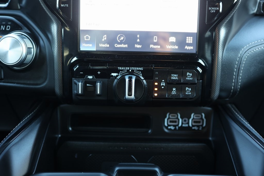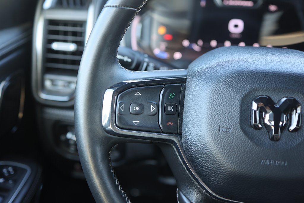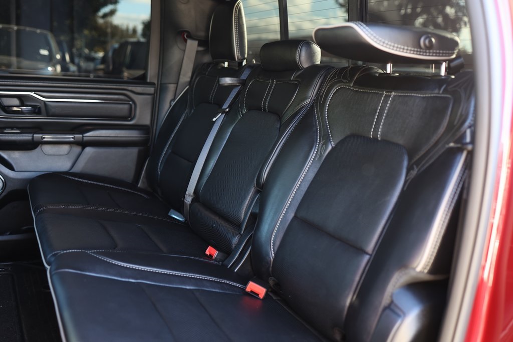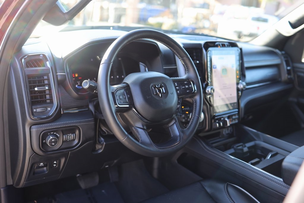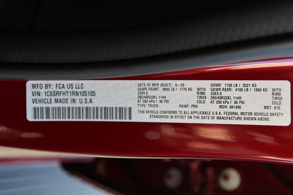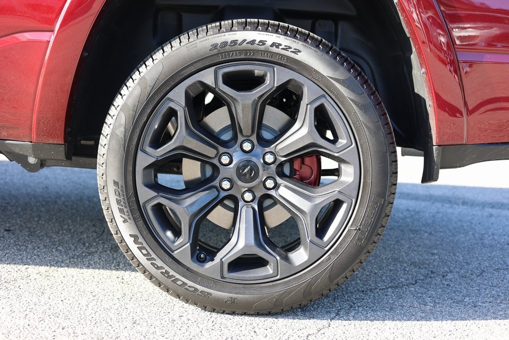 1500 Limited Night Edition, 4D Crew Cab, HEMI 5.7L V8 Multi Displacement VVT eTorque, 8-Speed Automatic, 4WD, Delmonico Red Pearlcoat, Accent Color Door Handles, Accent Color Premium Power Mirrors, Adaptive Cruise Control w/Stop & Go, Apple CarPlay/Android Auto, Auto-Dimming Exterior Driver Mirror, Black Day Light Opening Moldings, Black Exterior Truck Badging, Black Grille Surround Texture 7 Black, Black Headlamp Bezels, Black Painted Exterior Mirrors Caps, Body Color Front Bumper, Body Color Rear Bumper w/Step Pads, Convex Wide-Angle Exterior Mirror Insert, Digital Rearview Mirror, Dome Dual LED Reading Lamp, Dual Exhaust w/Black Tips, Dual-Pane Panoramic Sunroof, Exterior Mirrors Courtesy Lamps, Exterior Mirrors w/Heating Element, Exterior Mirrors w/Memory, Exterior Mirrors w/Supplemental Signals, harman/kardon 19 Speaker Premium Sound, Heads-Up Display, Lane Keep Assist, LED CHMSL Lamp, LED Dome/Reading Lamp, Limited Level 1 Equipment Group, MOPAR Spray In Bedliner, Navigation System, Night Edition, Parallel & Perp Park Assist w/Stop, ParkSense Front/Rear Park Assist w/Stop, Pedestrian Emergency Braking, Pick-Up Box Lighting, Power Running Boards, Power-Folding Mirrors, RAM Grille Badge - Black, Sport Performance Hood, Surround View Camera System, Tow Hooks, Trailer Brake Control, Trailer Light Check, Trailer Reverse Steering Control, Trailer Tire Pressure Monitoring System, Trailer Tow Group, Tri-Fold Tonneau Cover, Wheels: 22" x 9" Black Aluminum, Wireless Charging Pad.