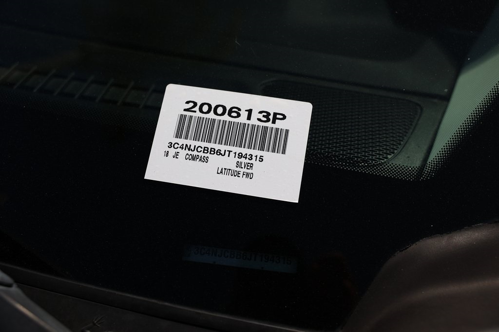 LIFE TIME WARRANTY, APPLE CAR PLAY, BACK UP CAMERA, Compass Latitude, 4D Sport Utility, 2.4L I4, 6-Speed Aisin Automatic, FWD, 115V Auxiliary Power Outlet, 4-Way Power Lumbar Adjust, 6 Speakers, 7.0" Touch Screen Display, Auto-Dimming Rear-View Mirror, Cluster 7.0" Color Driver Info Display, Front fog lights, Knee airbag, ParkView Rear Back-Up Camera, Popular Equipment Group, Power door mirrors, Quick Order Package 28J, Radio: Uconnect 4 w/7" Display, Remote Start System, Roof rack: rails only, Steering wheel mounted audio controls, Wheels: 17" x 7.0" Silver Painted Aluminum.Awards: * 2018 KBB.com 10 Best All-Wheel-Drive Vehicles Under $25,000 * 2018 KBB.com 10 Most Awarded Brands