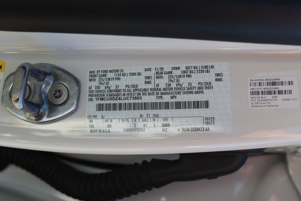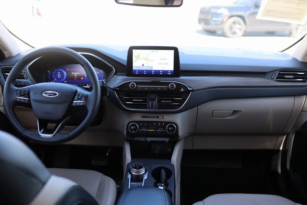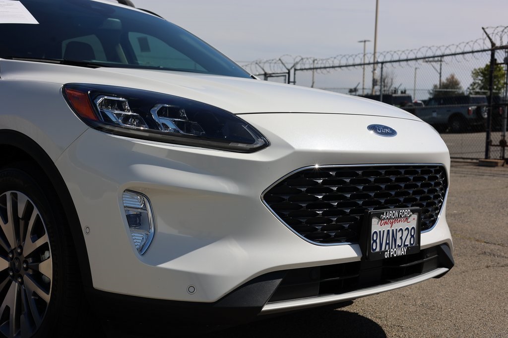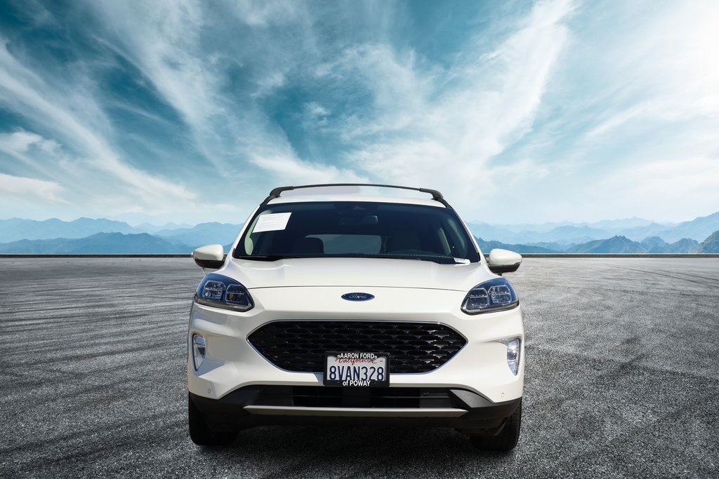 Star White Metallic Tri-Coat 2020 Ford Escape Titanium Hybrid FWD eCVT 2.5L iVCT 2.5L iVCT, eCVT, AppLink/Apple CarPlay and Android Auto, Equipment Group 400A, Exterior Parking Camera Rear, FordPass Connect, Fully automatic headlights, Heated front seats, Heated Leather-Trimmed Front Sport Contour Seats, Navigation System, Pedestrian Alert Sounder, Power Liftgate, Radio: B&O Sound System by Bang & Olufsen, SYNC 3 Communications & Entertainment System, Voice-Activated Touchscreen Navigation System, Wheels: 19" Machined-Face Aluminum, Wireless Charging Pad.Recent Arrival! Odometer is 7774 miles below market average! 44/37 City/Highway MPGAwards: * JD Power Automotive Performance, Execution and Layout (APEAL) Study