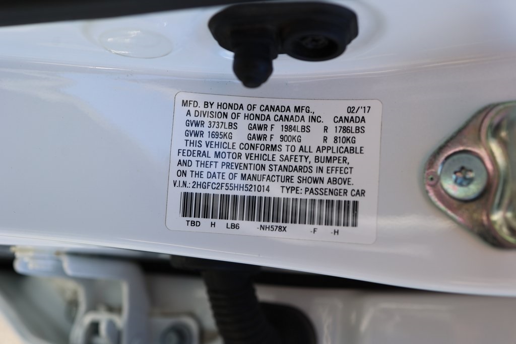 Civic LX, 4D Sedan, 2.0L I4 DOHC 16V i-VTEC, FWD, Ivory Cloth.Awards: * 2017 IIHS Top Safety Pick (When equipped with Honda Sensing) * 2017 KBB.com 10 Most Awarded Brands * 2017 KBB.com Brand Image AwardsKelley Blue Book Brand Image Awards are based on the Brand Watch(tm) study from Kelley Blue Book Market Intelligence. Award calculated among non-luxury shoppers. For more information, visit www.kbb.com. Kelley Blue Book is a registered trademark of Kelley Blue Book Co., Inc.