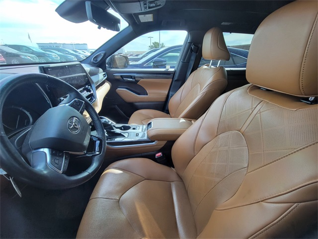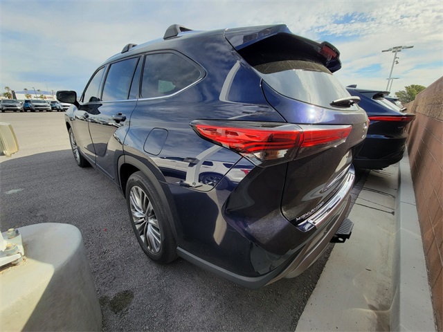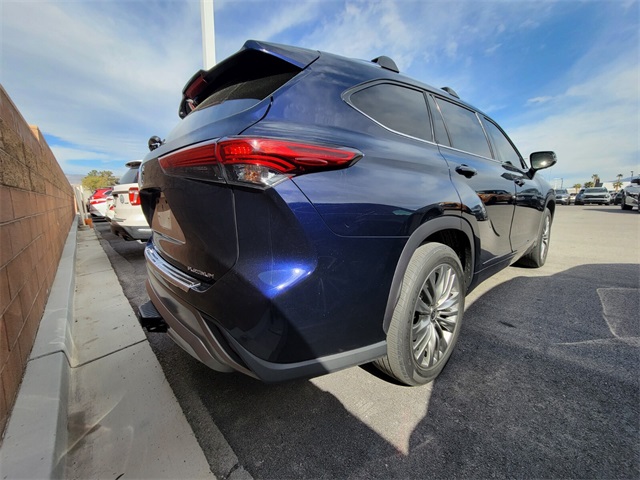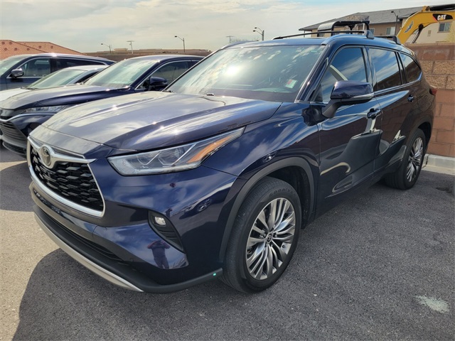 Recent Arrival!CARFAX One-Owner.Priced below KBB Fair Purchase Price!21/29 City/Highway MPGBlue 2021 Toyota Highlander Platinum FWD 8-Speed Automatic 3.5L V6 DOHCIf you don't drive here, you can't save here!Awards: * ALG Residual Value Awards, Residual Value AwardsPrice may not include recon fee. 11 Speakers, 20" Painted Alloy Wheels, 3.003 Axle Ratio, 3rd row seats: split-bench, 4-Wheel Disc Brakes, ABS brakes, Air Conditioning, Alloy wheels, AM/FM radio: SiriusXM, Apple CarPlay/Android Auto, Auto High-beam Headlights, Auto-dimming Rear-View mirror, Automatic temperature control, Brake assist, Bumpers: body-color, Delay-off headlights, Digital Rearview Mirror w/HomeLink, Driver door bin, Driver vanity mirror, Dual front impact airbags, Dual front side impact airbags, Electronic Stability Control, Emergency communication system: Safety Connect with 1-year trial, Four wheel independent suspension, Front anti-roll bar, Front Bucket Seats, Front Center Armrest, Front dual zone A/C, Front fog lights, Front reading lights, Fully automatic headlights, Garage door transmitter: HomeLink, Heads-Up Display, Heated door mirrors, Heated front seats, Heated rear seats, Heated steering wheel, Heated/Ventilated Front Bucket Seats, High Grade LED Projector Headlights, Illuminated entry, Knee airbag, Leather Seat Trim, Leather Shift Knob, Low tire pressure warning, Memory seat, Navigation system: Dynamic Navigation (3-year trial), Occupant sensing airbag, Outside temperature display, Overhead airbag, Overhead console, Panic alarm, Panoramic Moonroof, Panoramic View Monitor, Passenger door bin, Passenger vanity mirror, Power door mirrors, Power driver seat, Power Liftgate, Power moonroof, Power passenger seat, Power steering, Power windows, Radio: Premium Audio w/JBL Clari-Fi, Rain sensing wipers, Rear air conditioning, Rear anti-roll bar, Rear reading lights, Rear window defroster, Rear window wiper, Reclining 3rd row seat, Remote keyless entry, Roof rack: rails only, Security system, Speed control, Speed-sensing steering, Split folding rear seat, Spoiler, Steering wheel mounted audio controls, Tachometer, Telescoping steering wheel, Tilt steering wheel, Traction control, Trip computer, Turn signal indicator mirrors, Variably intermittent wipers, and Ventilated front seats.
