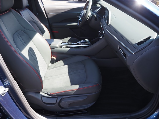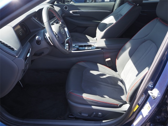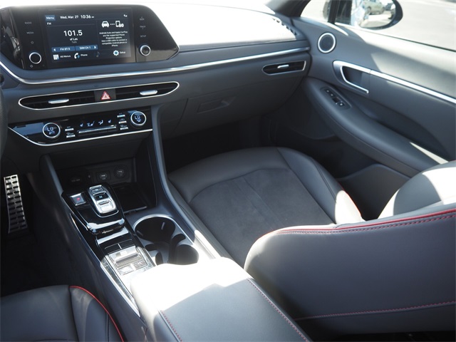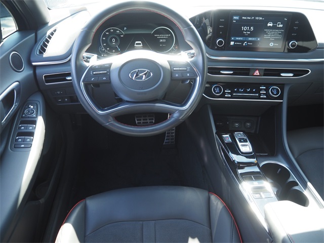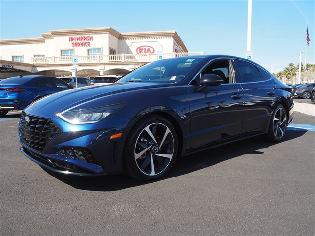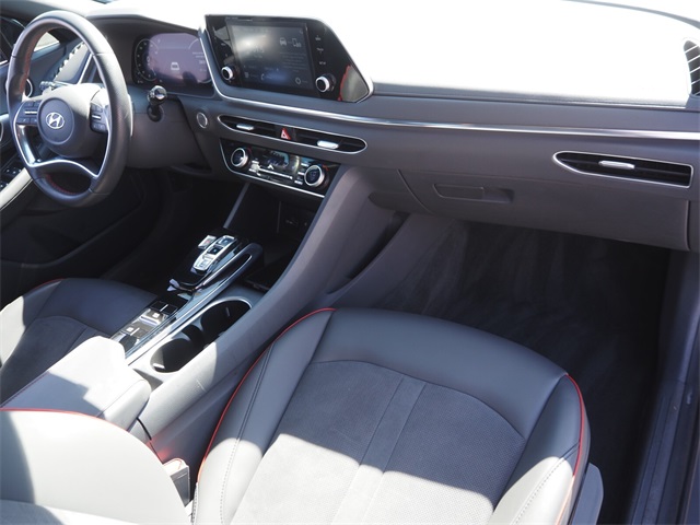 CARFAX One-Owner.Priced below KBB Fair Purchase Price!Odometer is 17999 miles below market average!27/37 City/Highway MPGStormy Sea 2021 Hyundai Sonata SEL Plus FWD 8-Speed Automatic with Overdrive I4 Black Artificial Leather.If you don't drive here, you can't save here!Awards: * ALG Residual Value Awards, Residual Value AwardsPrice may not include recon fee. Option Group 01, Black Artificial Leather, 4-Wheel Disc Brakes, 6 Speakers, ABS brakes, Air Conditioning, Alloy wheels, AM/FM radio: SiriusXM, Apple CarPlay & Android Auto, Auto High-beam Headlights, Auto-dimming Rear-View mirror, Automatic temperature control, Brake assist, Bumpers: body-color, Carpeted Floor Mats, Delay-off headlights, Dinamica Suede/Leatherette Seating Surfaces, Driver door bin, Driver vanity mirror, Dual front impact airbags, Dual front side impact airbags, Electronic Stability Control, Emergency communication system: Blue Link Connected Car Service (3-year complimentary subscription), Exterior Parking Camera Rear, Four wheel independent suspension, Front anti-roll bar, Front Bucket Seats, Front Center Armrest, Front dual zone A/C, Front reading lights, Fully automatic headlights, Garage door transmitter: HomeLink, Heated door mirrors, Heated Front Bucket Seats, Heated front seats, Illuminated entry, Knee airbag, Low tire pressure warning, Occupant sensing airbag, Outside temperature display, Overhead airbag, Overhead console, Panic alarm, Passenger door bin, Passenger vanity mirror, Power door mirrors, Power driver seat, Power steering, Power windows, Radio data system, Radio: AM/FM/MP3/HD/SiriusXM Display Audio, Rear anti-roll bar, Rear seat center armrest, Rear side impact airbag, Rear window defroster, Remote keyless entry, Security system, Speed control, Speed-sensing steering, Speed-Sensitive Wipers, Split folding rear seat, Steering wheel mounted audio controls, Tachometer, Telescoping steering wheel, Tilt steering wheel, Traction control, Trip computer, Turn signal indicator mirrors, Variably intermittent wipers, Wheels: 19 x 8.0J Aluminum Alloy, and Wireless Device Charging.