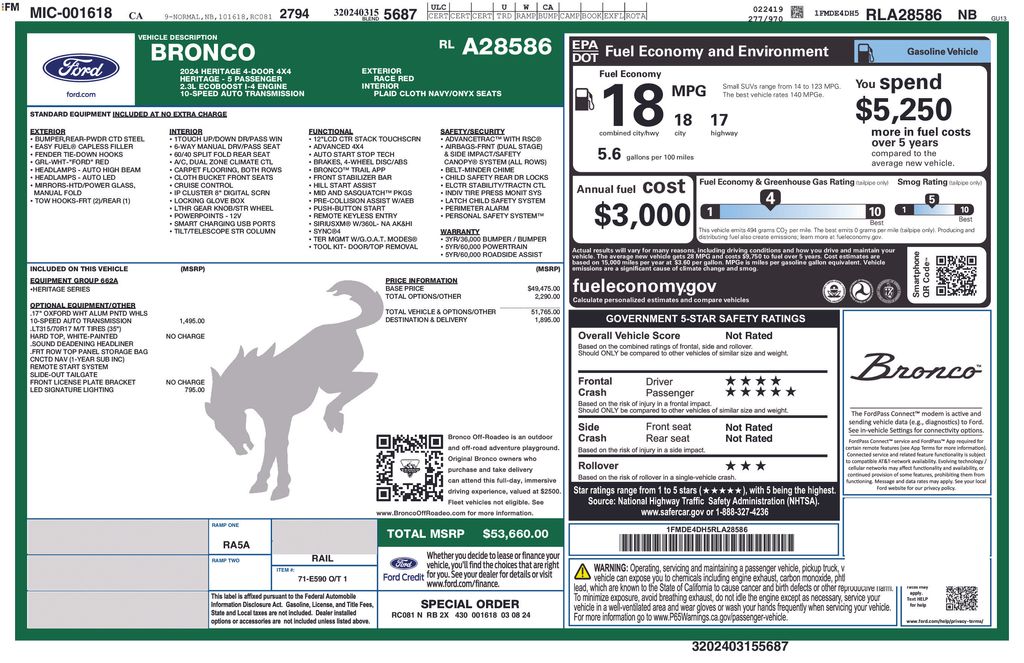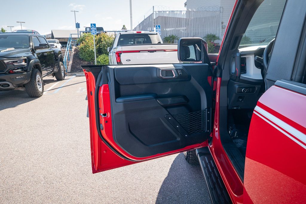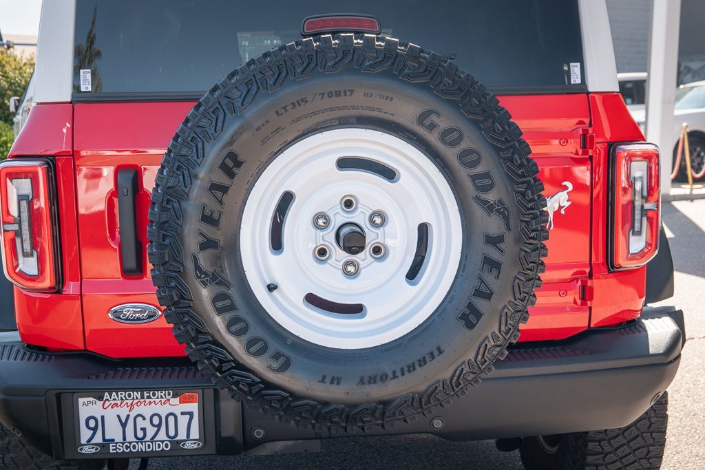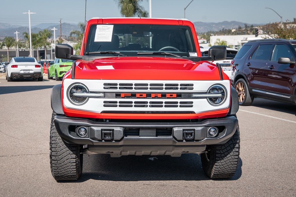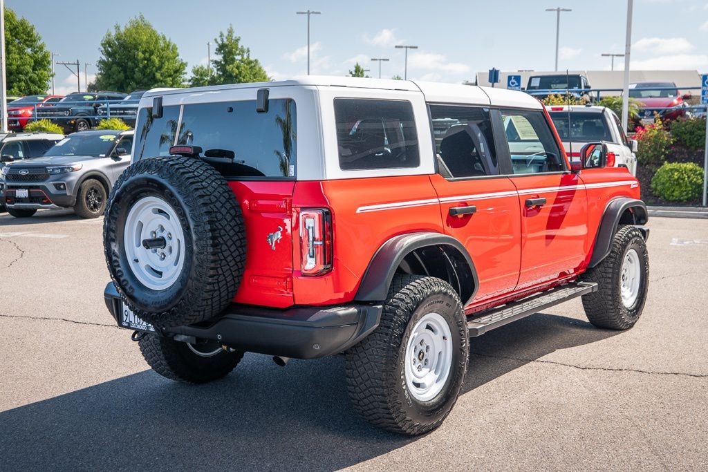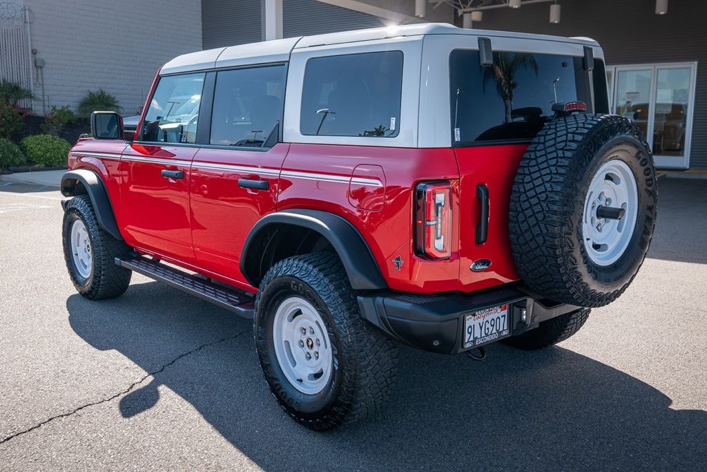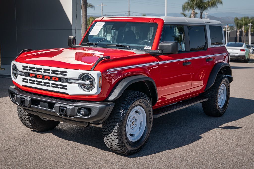 Race Red 2024 Ford Bronco Heritage Edition 4WD 10-Speed Automatic 2.3L EcoBoost I-4 Alloy wheels, Brake assist, Convertible HardTop, Equipment Group 662A Mid Package, Exterior Parking Camera Rear, Front dual zone A/C, Front fog lights, Navigation system: Connected Navigation, SiriusXM Radio w/360L, SYNC 4, Traction control, Wheels: 17" Unique White.Recent Arrival!