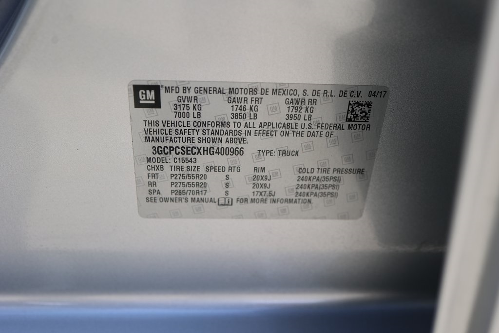 Silver Ice Metallic 2017 Chevrolet Silverado 1500 LTZ 1LZ RWD 6-Speed Automatic Electronic with Overdrive EcoTec3 5.3L V8 6-Speed Automatic Electronic with Overdrive, Jet Black Leather, 110-Volt AC Power Outlet, 150 Amp Alternator, 4.2" Diagonal Color Display Driver Info Center, 6 Speaker Audio System, Auto-Dimming Inside Rear-View Mirror, Auxiliary External Transmission Oil Cooler, Bluetooth® For Phone, Bose Speaker System, Chrome Bodyside Moldings, Chrome Cap Power-Adjustable Heated Outside Mirrors, Chrome Door Handles, Chrome Grille Surround, Chrome Mirror Caps, Color-Keyed Carpeting w/Rubberized Vinyl Floor Mats, Deep-Tinted Glass, Driver & Front Passenger Illuminated Vanity Mirrors, Dual-Zone Automatic Climate Control, Electric Rear-Window Defogger, Enhanced Driver Alert Package, Exterior Parking Camera Rear, EZ Lift & Lower Tailgate, Forward Collision Alert, Front Chrome Bumper, Front Frame-Mounted Black Recovery Hooks, Fully automatic headlights, HD Radio, Heated Driver & Front Passenger Seats, Heavy-Duty Rear Locking Differential, Integrated Trailer Brake Controller, IntelliBeam Automatic High Beam On/Off Headlight, Lane Keep Assist, Leather Wrapped Heated Steering Wheel, Leather Wrapped Steering Wheel w/Cruise Controls, LED Taillamps w/Signature, Low Speed Forward Automatic Braking, LTZ Plus Package, Manual Tilt/Telescoping Steering Column, Navigation System, OnStar 3 Months Guidance Plan, OnStar w/4G LTE, Power Adjustable Pedals, Power Sliding Rear Window, Power Sunroof, Power Windows w/Driver Express Up, Preferred Equipment Group 1LZ, Rear 60/40 Folding Bench Seat (Folds Up), Rear Chrome Bumper, Rear Vision Camera, Rear Wheelhouse Liners, Remote Keyless Entry, Remote Locking Tailgate, Remote Vehicle Starter System, Single Slot CD/MP3 Player, Sport Package, Steering Wheel Audio Controls, Theft Deterrent System (Unauthorized Entry), Thin Profile LED Fog Lamps, Trailering Package, Ultrasonic Front & Rear Park Assist, Universal Home Remote, Wheels: 20" x 9" Chrome.Recent Arrival!Awards: * 2017 KBB.com 10 Most Awarded BrandsReviews: * Quick acceleration and strong towing/hauling ability thanks to available V8 engines; front seats are comfortable for long drives; cabin is pleasingly quiet at highway speeds; long list of available options allow for extensive customization. Source: Edmunds